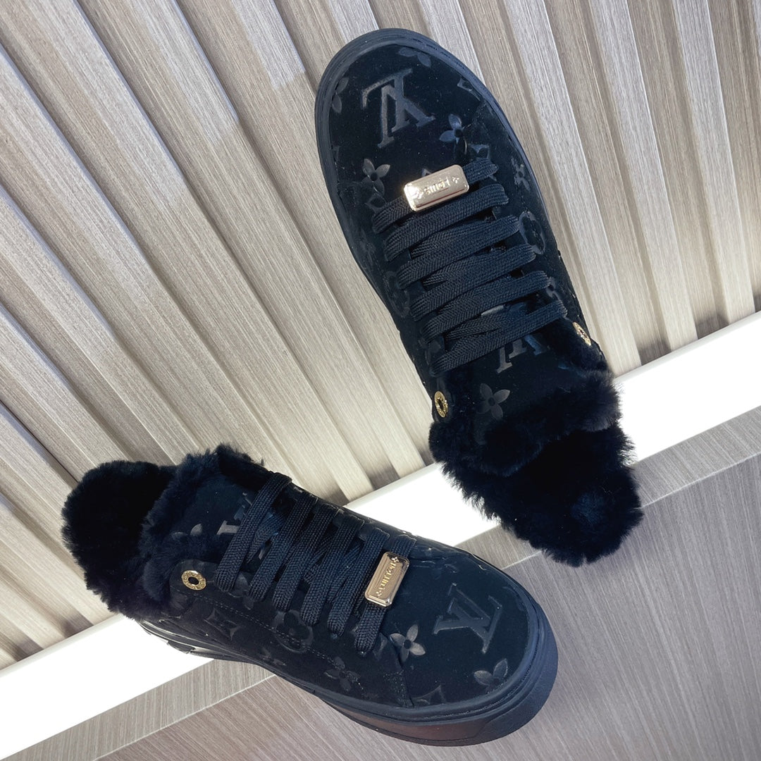 LV Cosy Flat Comfort Clog Black Fur Lining Suede