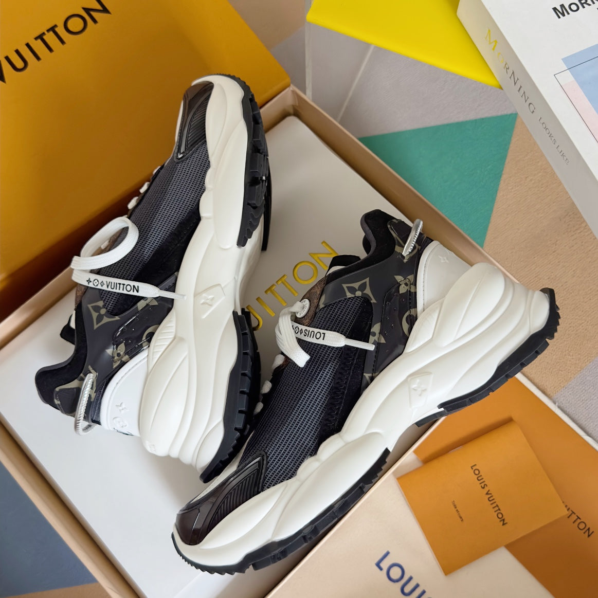 LV Run 55 Sneaker 55mm White Mix Brown Black Monogram Polyester Mesh Fabric