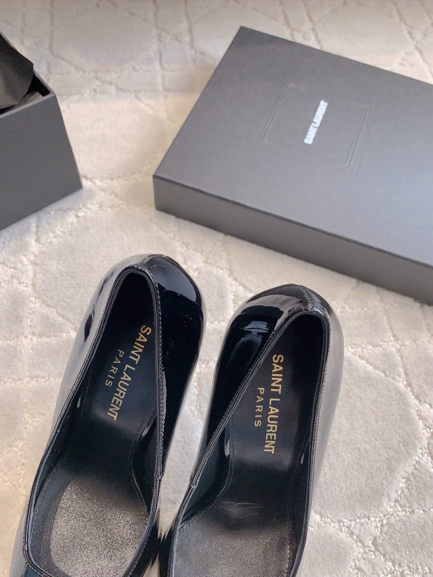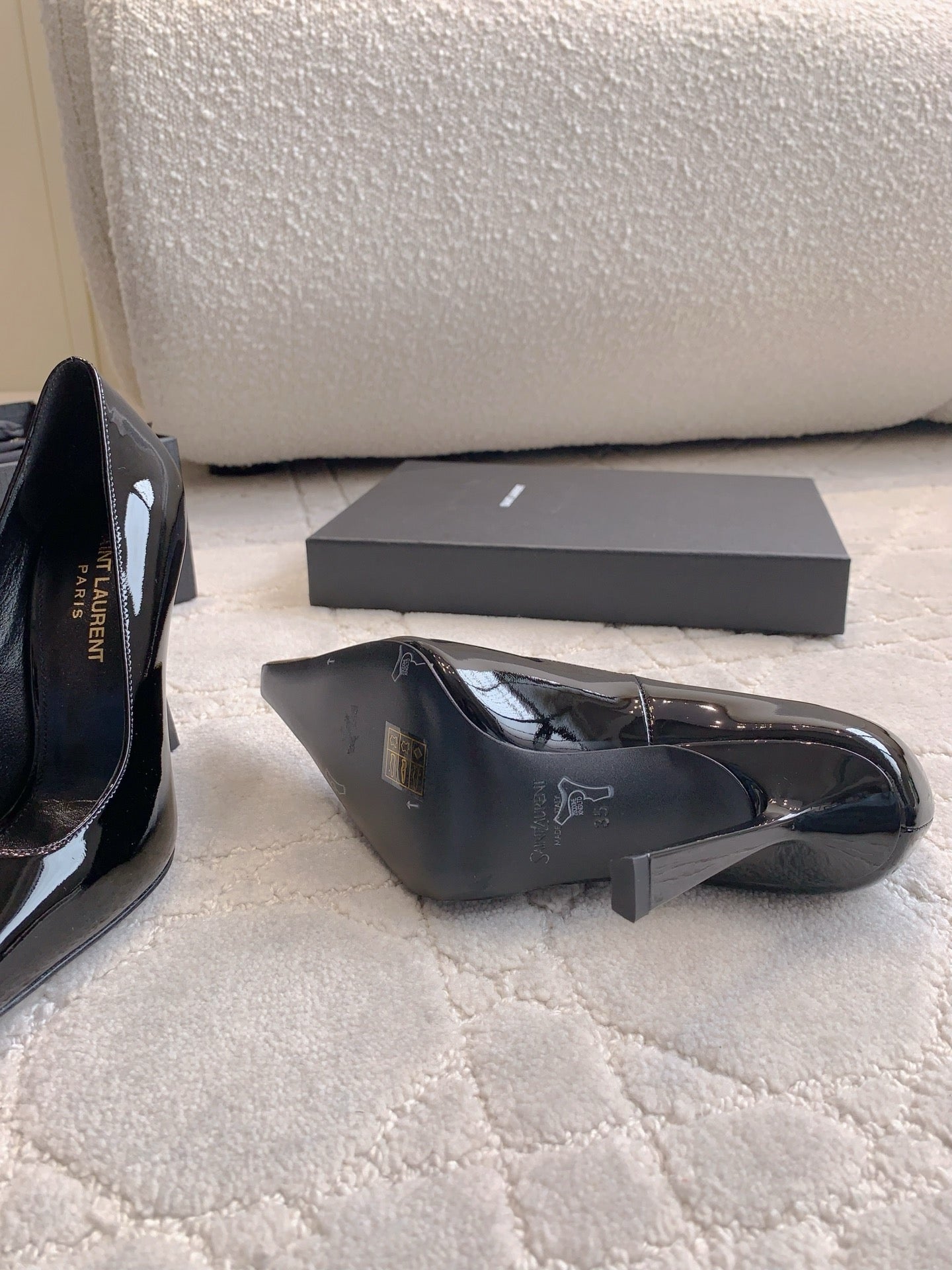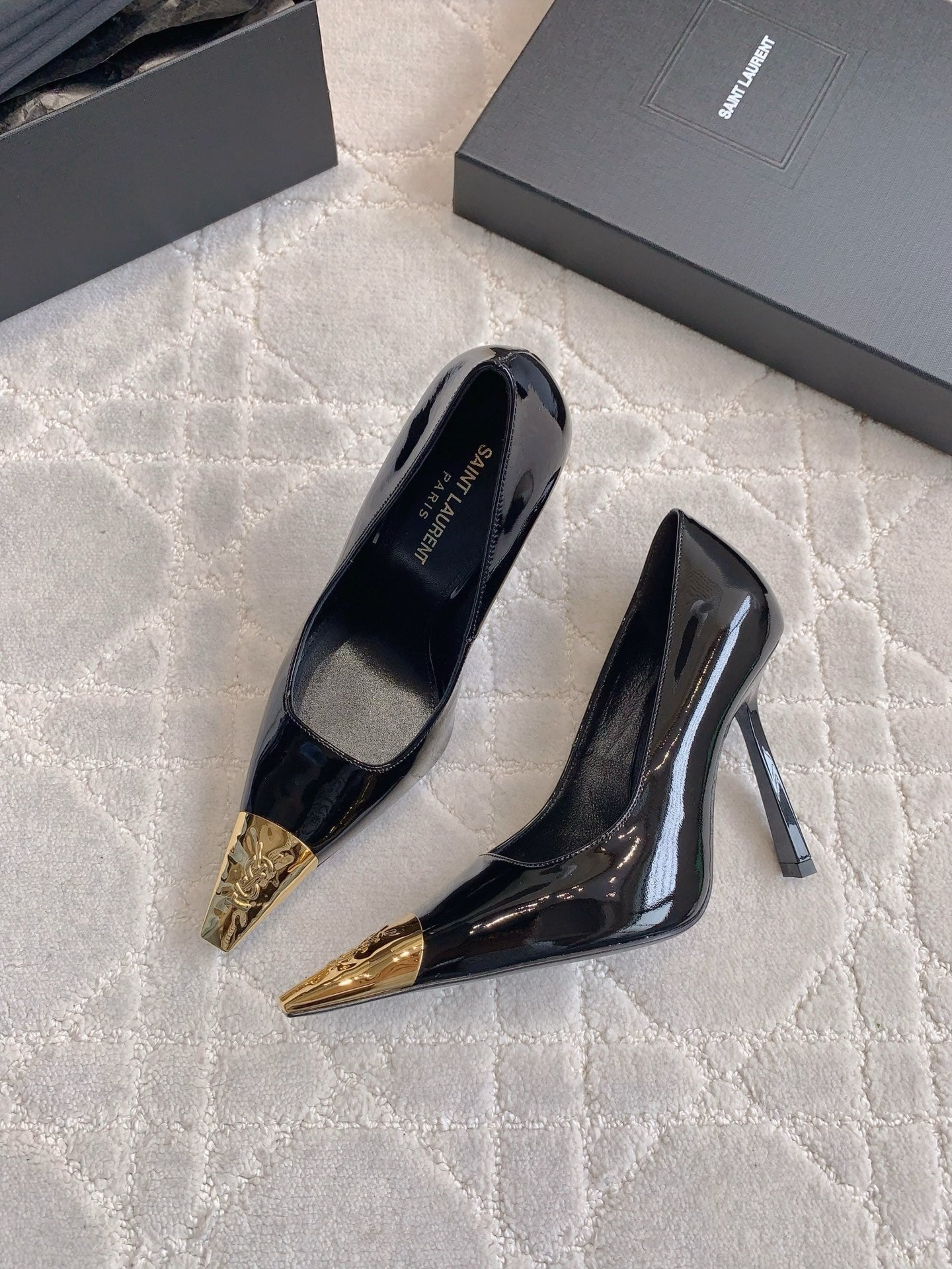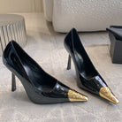 HIGH HEEL 10 CM PUMP IN BLACK PATENT CALFSKIN WITH GOLD HARDWARE