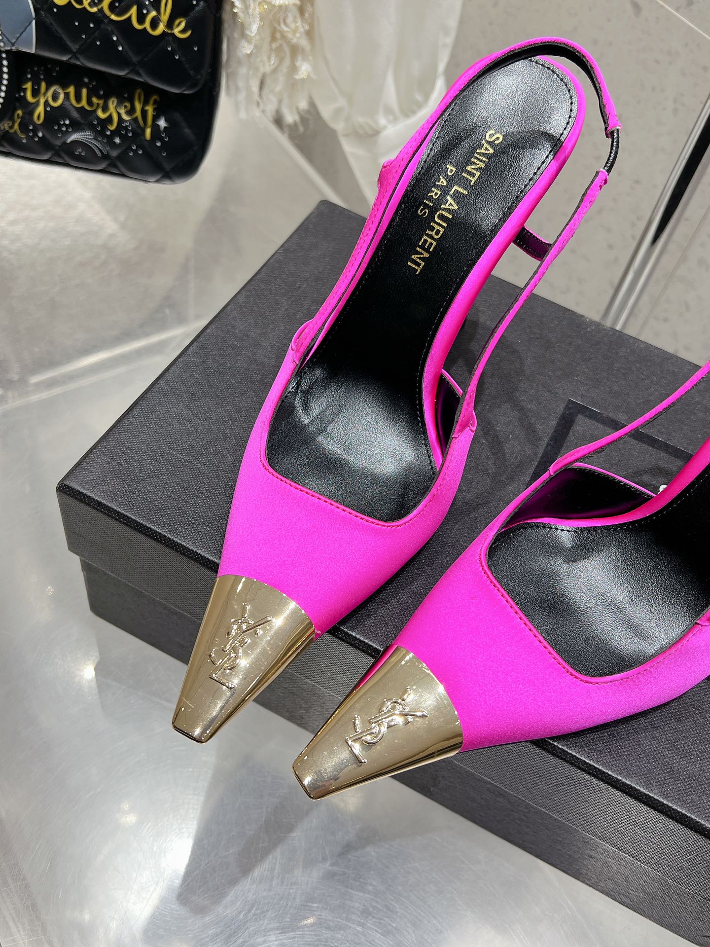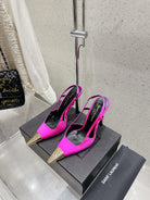 HIGH HEEL 10 CM SLINGBACK IN BRIGHT PINK CALFSKIN WITH GOLD HARDWARE