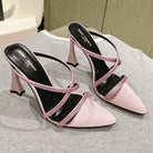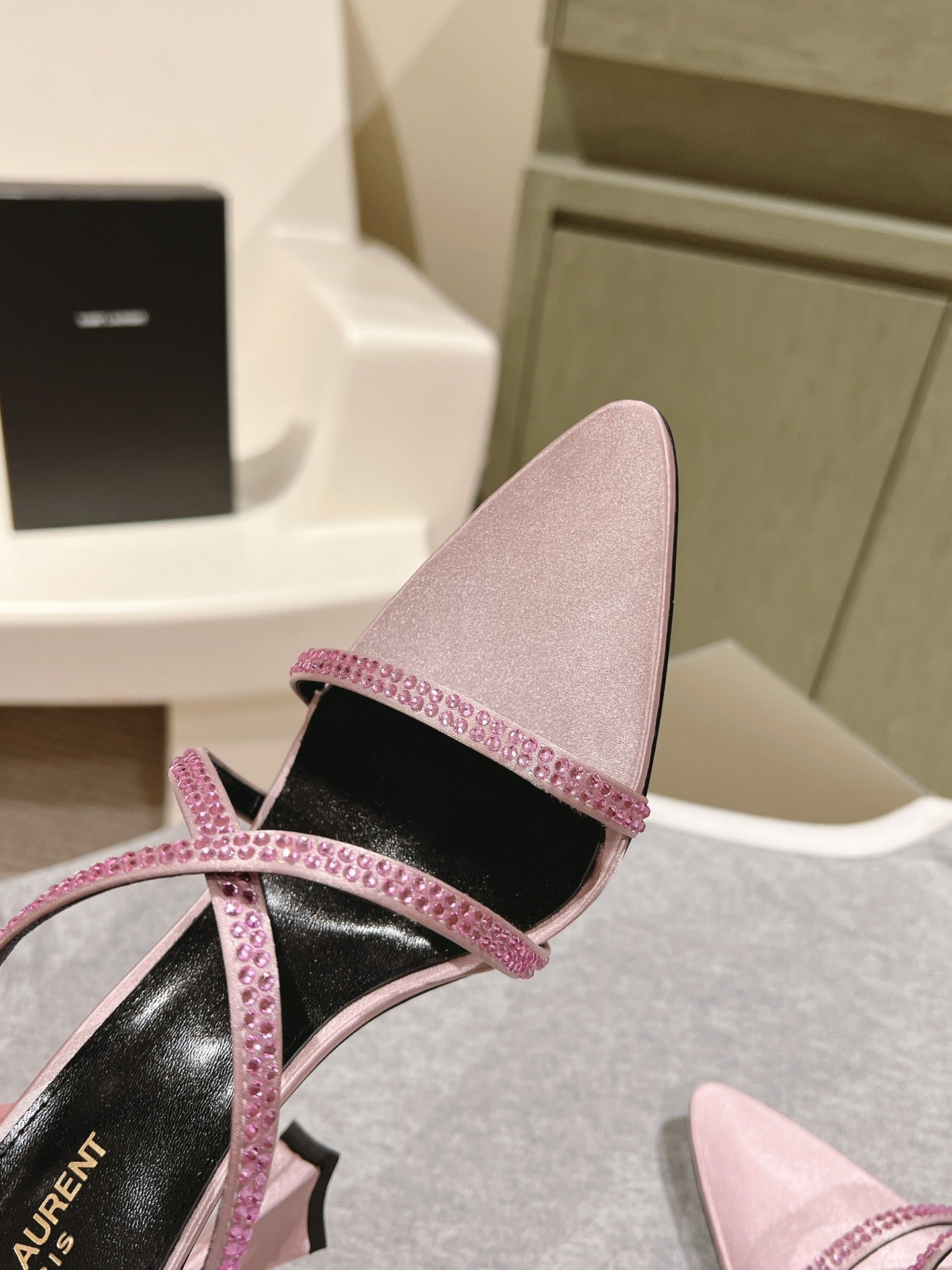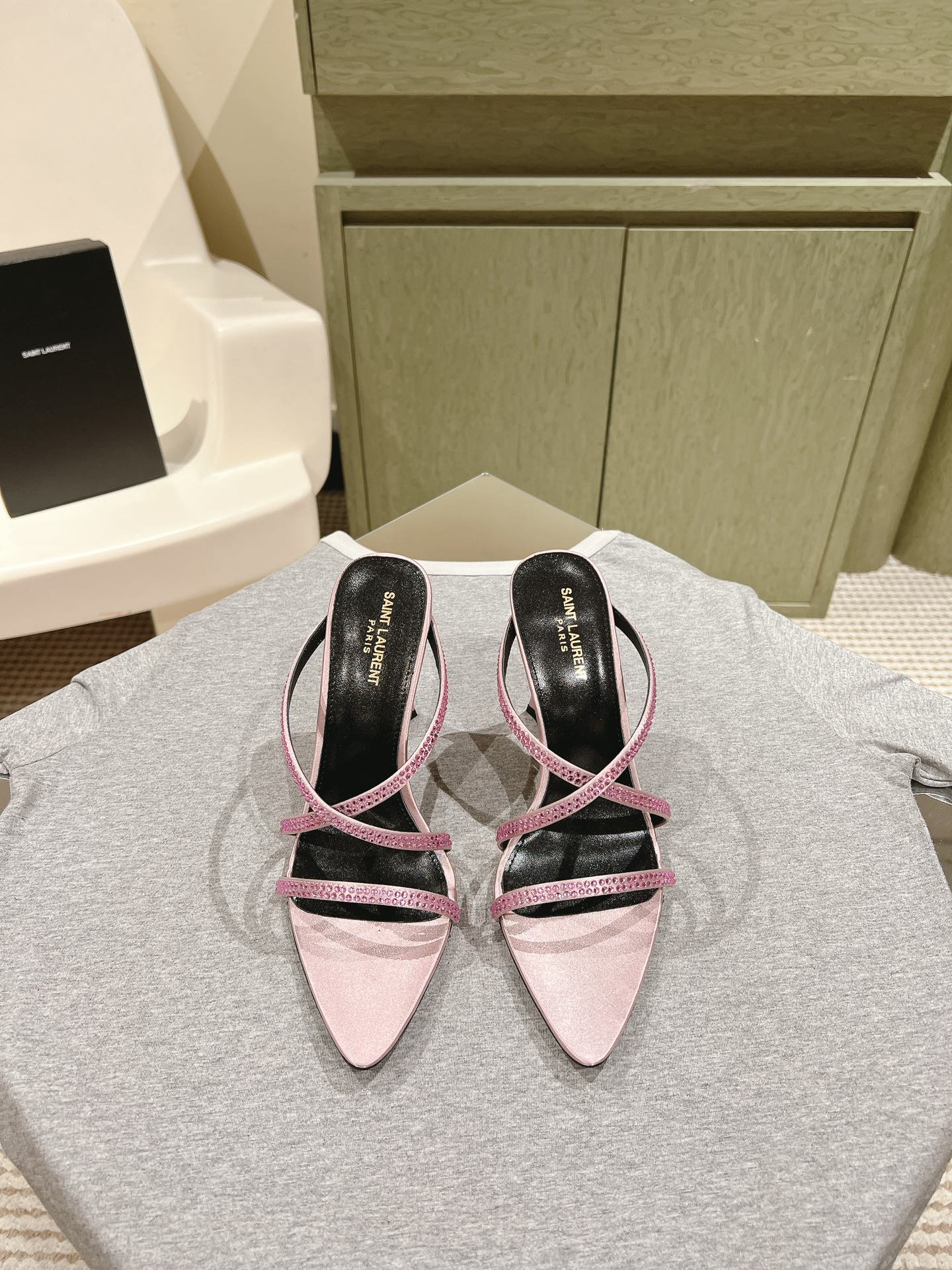 HIGH HEEL MULE 10 CM IN BABY PINK SATIN WITH RHINESTONES