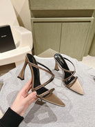 HIGH HEEL MULE 10 CM IN CAMEL BEIGE SATIN WITH RHINESTONES