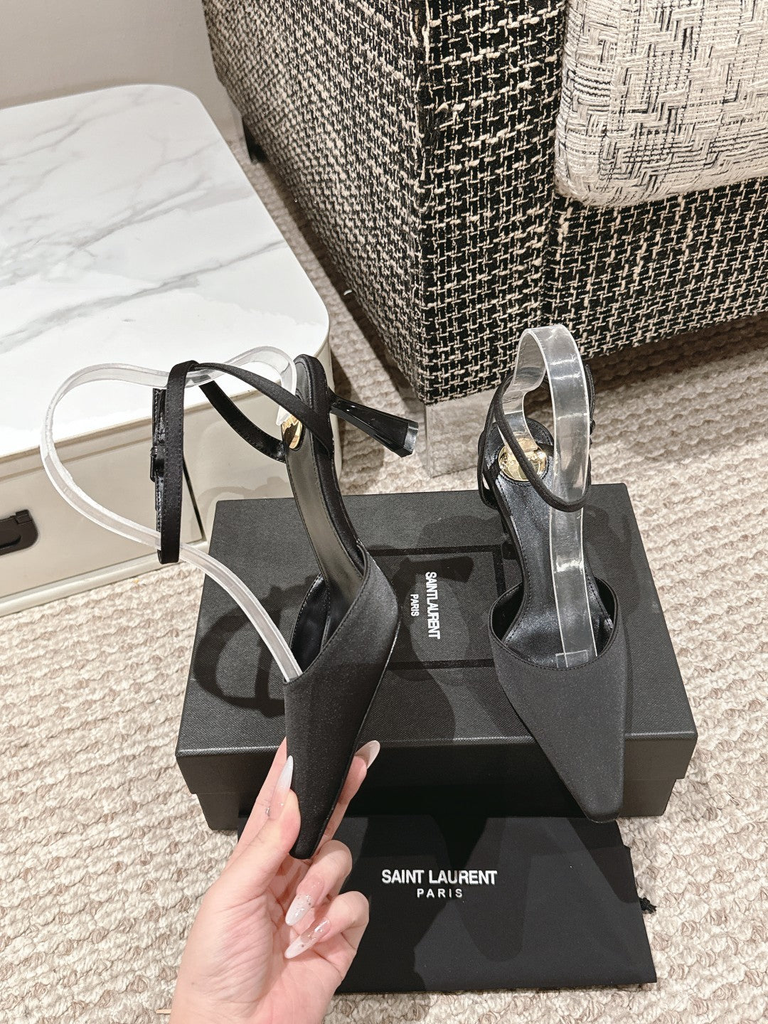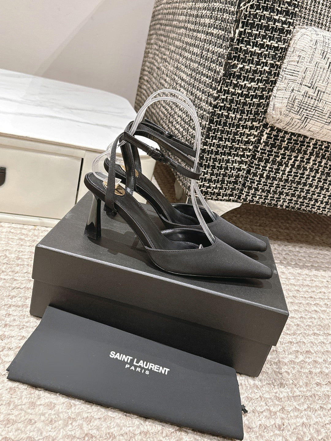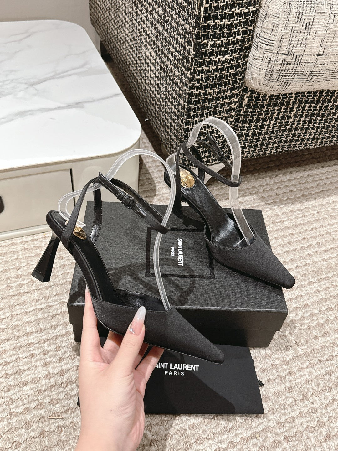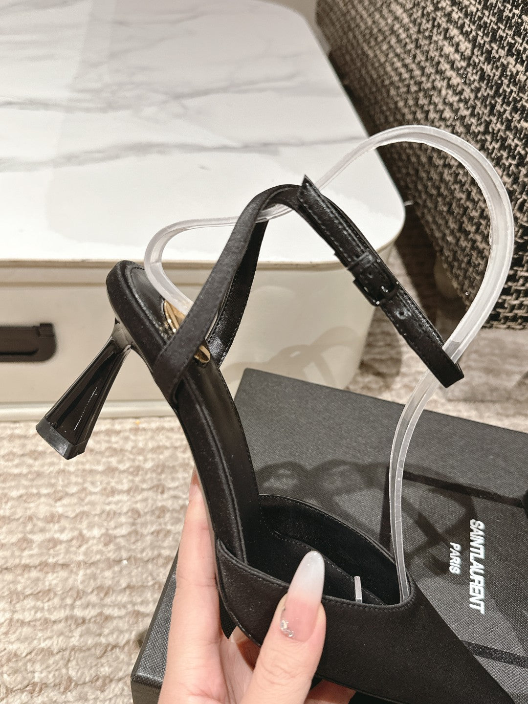 HIGH-HEELED SLINGBACKS SANDAL 7 CM IN BLACK SILK