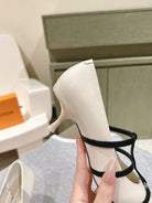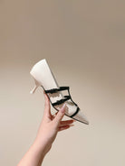 HIGH PUMP 45MM IN WHITE CALFSKIN WITH BLACK STRAPS