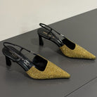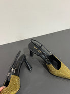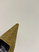 HIGH SLINGBACKS POINTED-TOE IN METALLIC GOLD LAMBSKIN WITH CRYSTALS