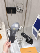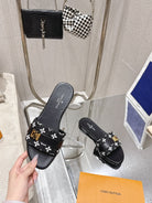 LV Flat Mules pairs raffia black monogram cowhide 383722