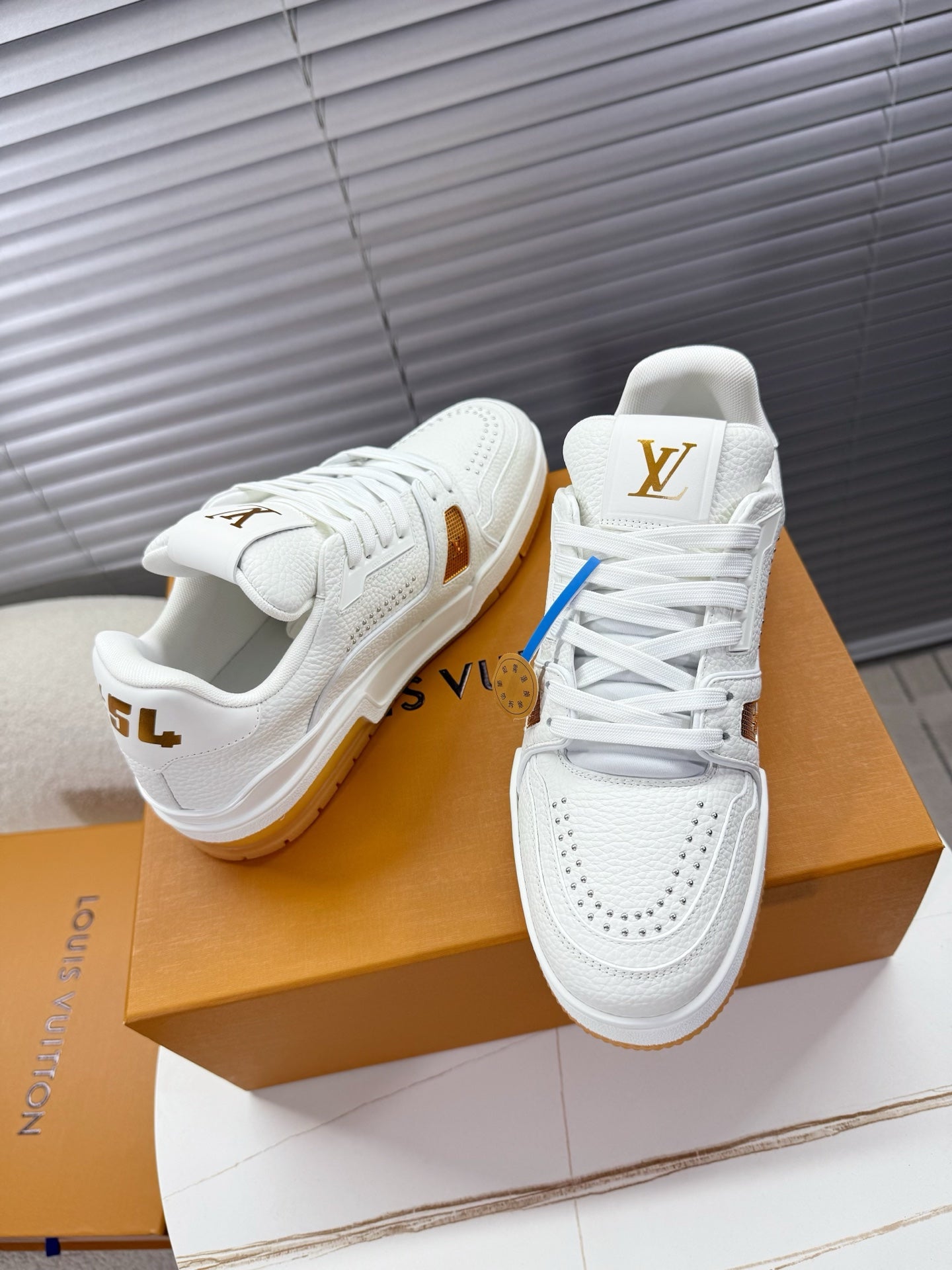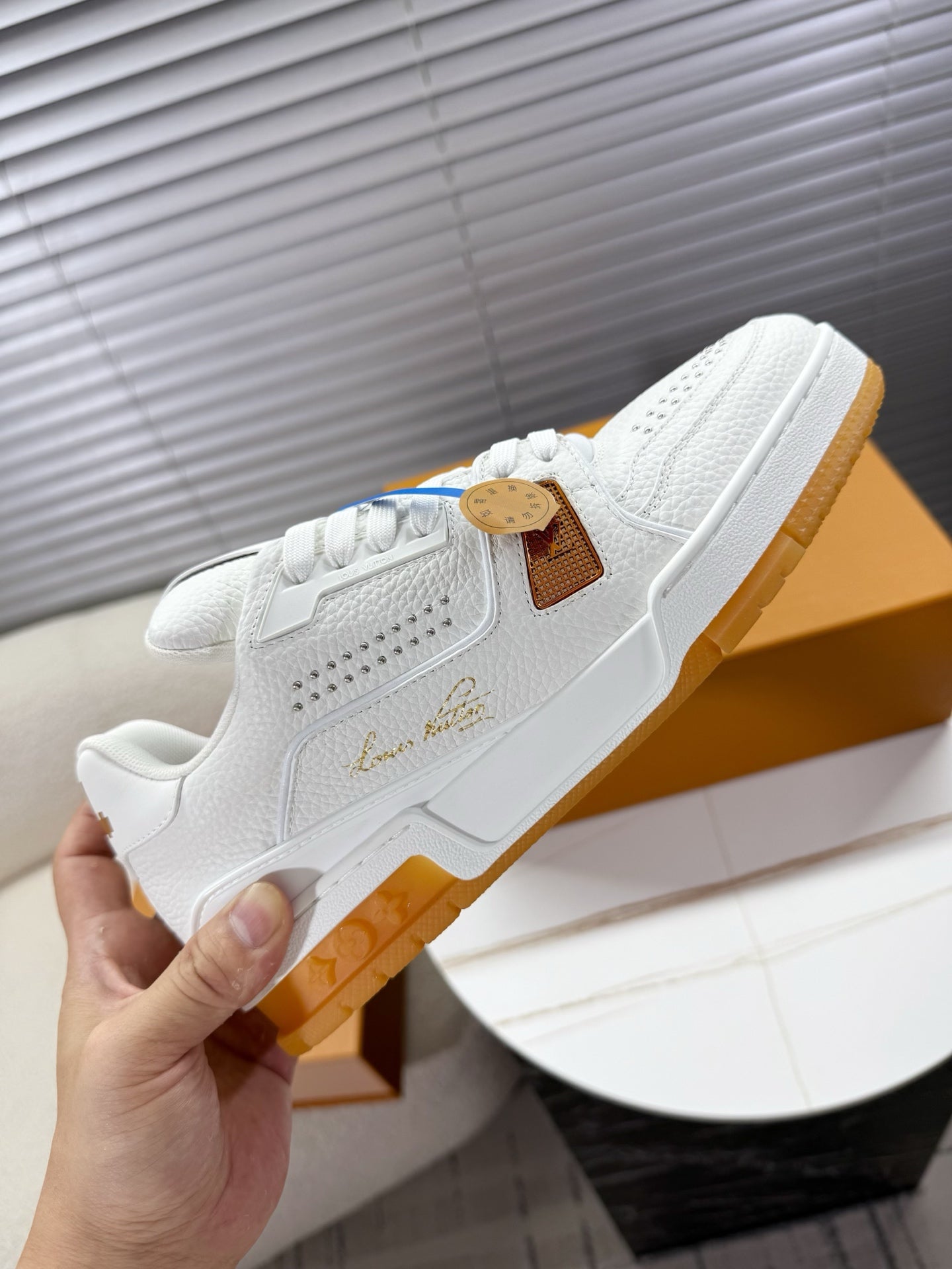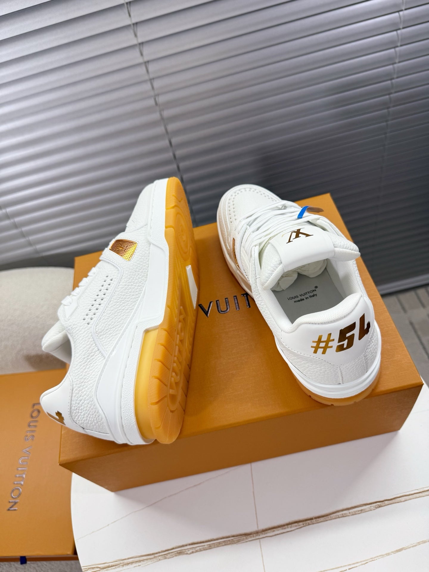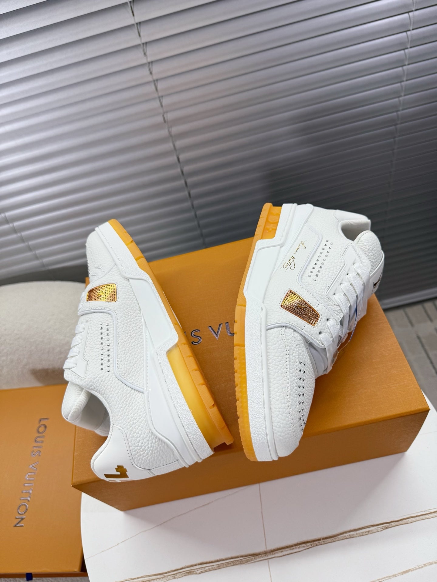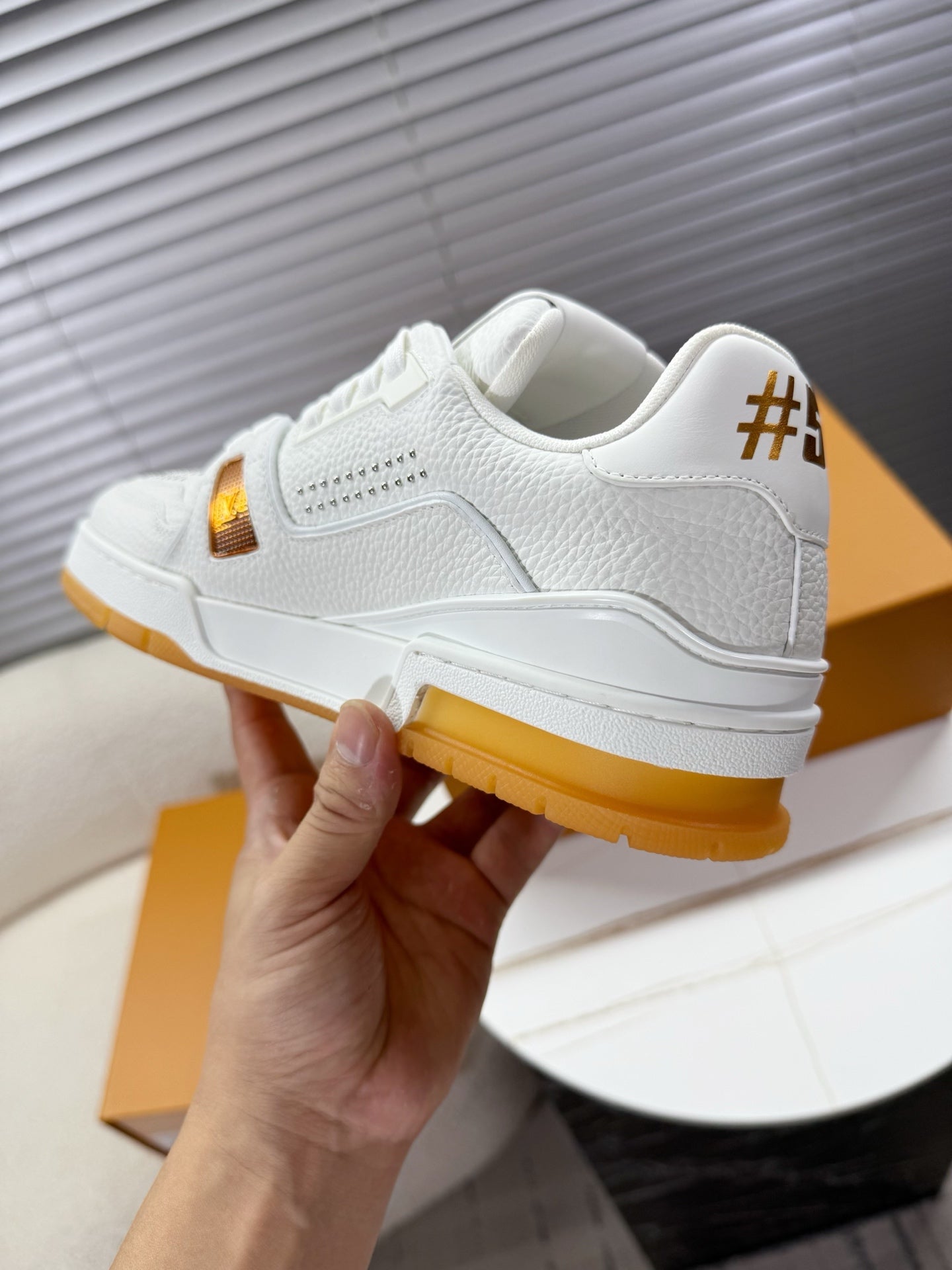LV 1AHTGR Trainer Sports Shoes White Orange Grained Calfskin 511758