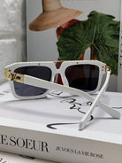 MASCOT PILOT SQUARE SUNGLASS 581377 IN WHTIE ACETATE GOLD METAL