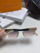 SQUARE SUNGLASSES 581359 IN IVORY ACETATE EMBOSSED MONOGRAM LOGO
