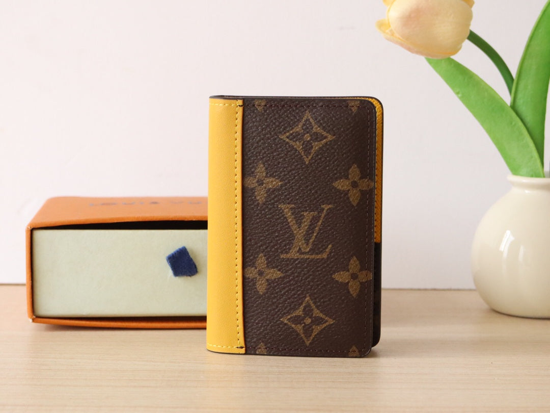 LV Pocket Card Holder Wallet Yellow Monogram Canvas & Cowhide 224113