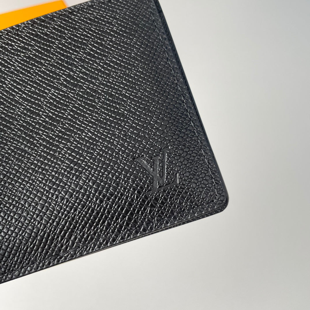 LV Enveloppe Carte De Visite Card Holder Black Taiga Leather 221503