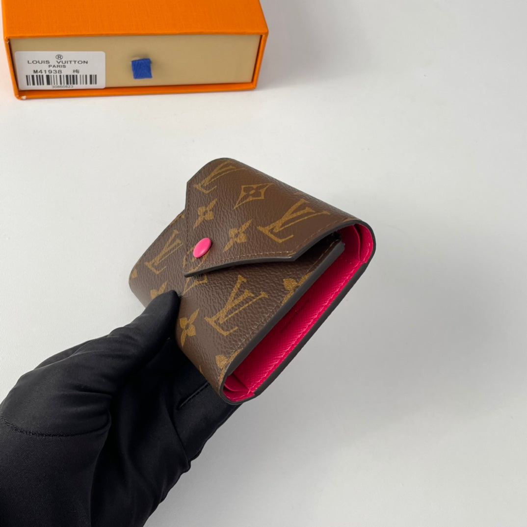 LV M41938 Victorine Wallet Brown Rose Red Monogram Canvas 221675