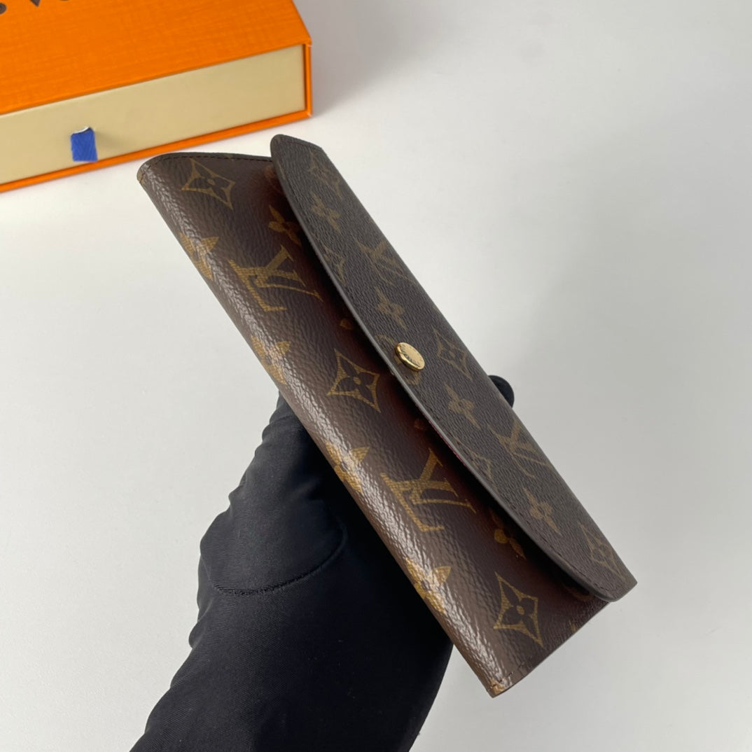LV M60696 Emilie Wallet Brown Plum-red Monogram Canvas 221663