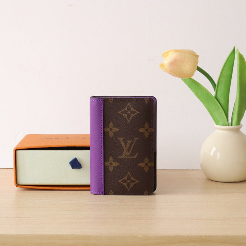 LV Pocket Card Holder Wallet Purple Monogram Canvas & Cowhide 224114