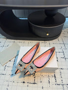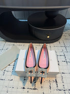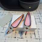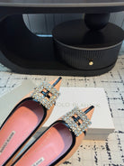 Hangisi 10mm Ballet Flat Pink Linen with Black Leather Jewel Buckle 161060
