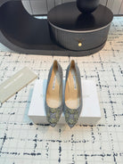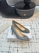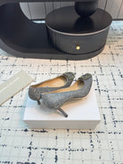 Hangisi 70 Silver Glitter Fabric Leather Jewel Buckle Pumps 912614