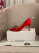 Hangisi Red Satin Crystal Embellished Pumps 700531