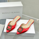 Manolo Buckle Flast Mules Red Silk 327518