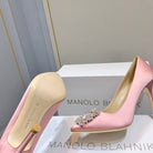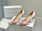 Manolo Diamond Buckle Pumps Light Pink Silk 327504