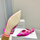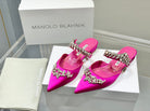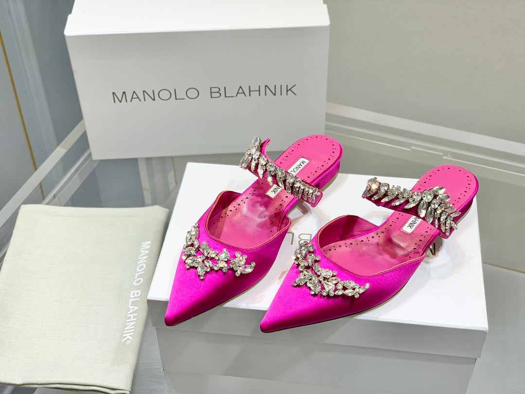 Manolo Flats Mules Crystal Dark Pink Silk Satin 327469