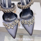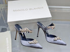 Manolo Mules Crystal Grey Silk Satin 219383