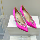 Manolo Wheat Ear Rhinestone High Heels Pumps Dark Pink Silk Fabric 327452