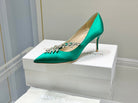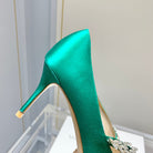 Manolo Wheat Ear Rhinestone Pumps Green Silk Fabric 327454