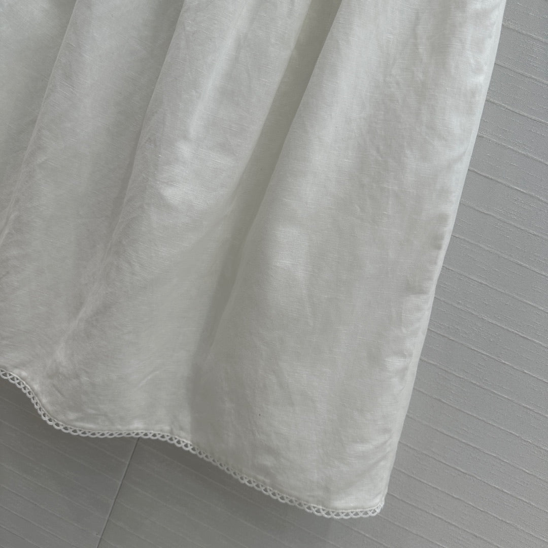 Miumiu 25 Double-layer Collar Shirt White Linen Cotton
