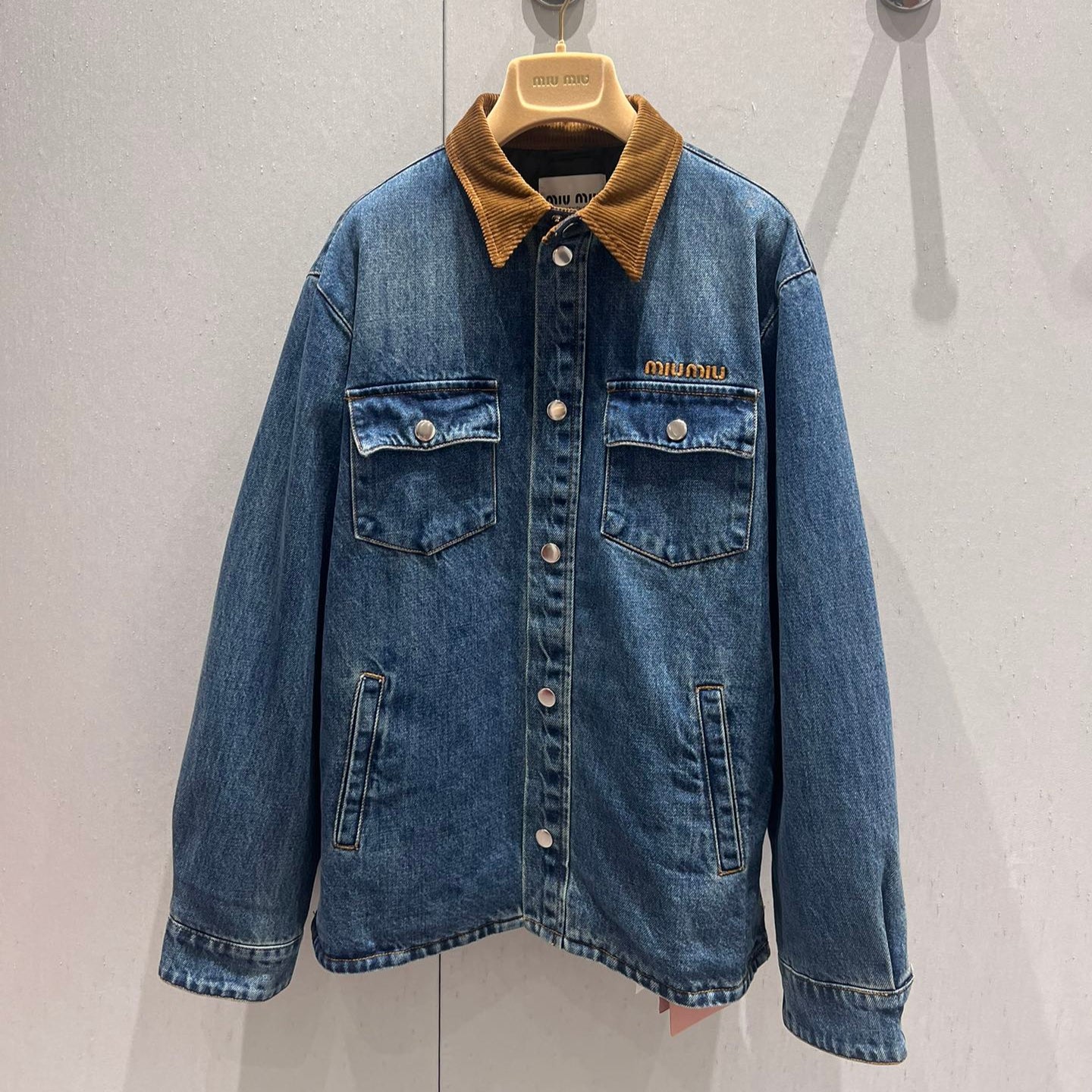 Miu Miu Denim Jacket Blue Brown Cotton 206450