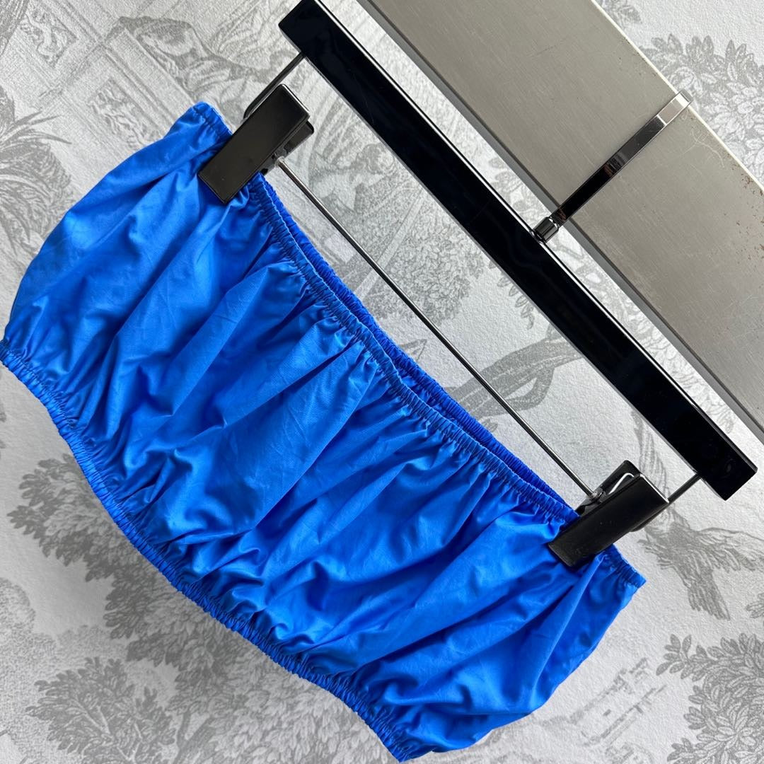 Miumiu 2025 Striped Short Shirt Blue Cotton