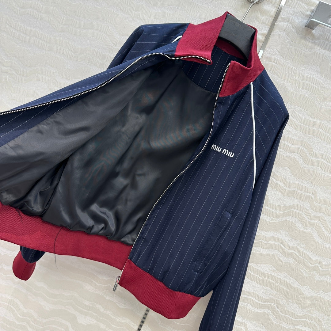 Miu Miu 25 Navy Blue Striped Jacket Polyester