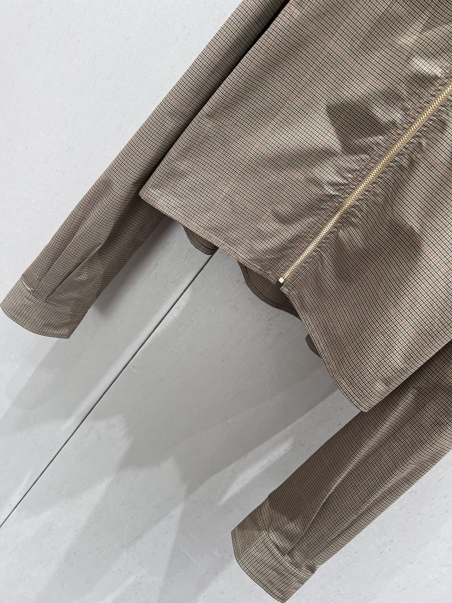 Miu Miu 25 Plaid Lapel Zipper Shirt Brown Cotton 211152