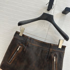 Miu Miu 25 Short Skirt Black Brown Sheepskin