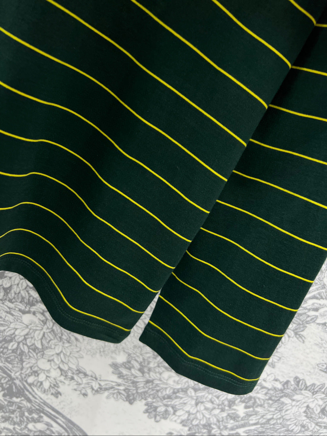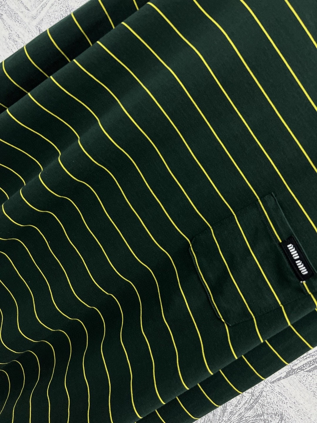 Miu Miu 25 Striped Long-sleeved T-shirt Green Cotton