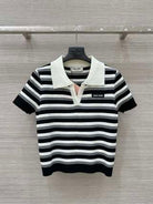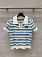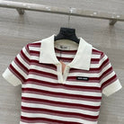 Miu Miu 25 Striped Polo Collar Short-sleeved Top Wool