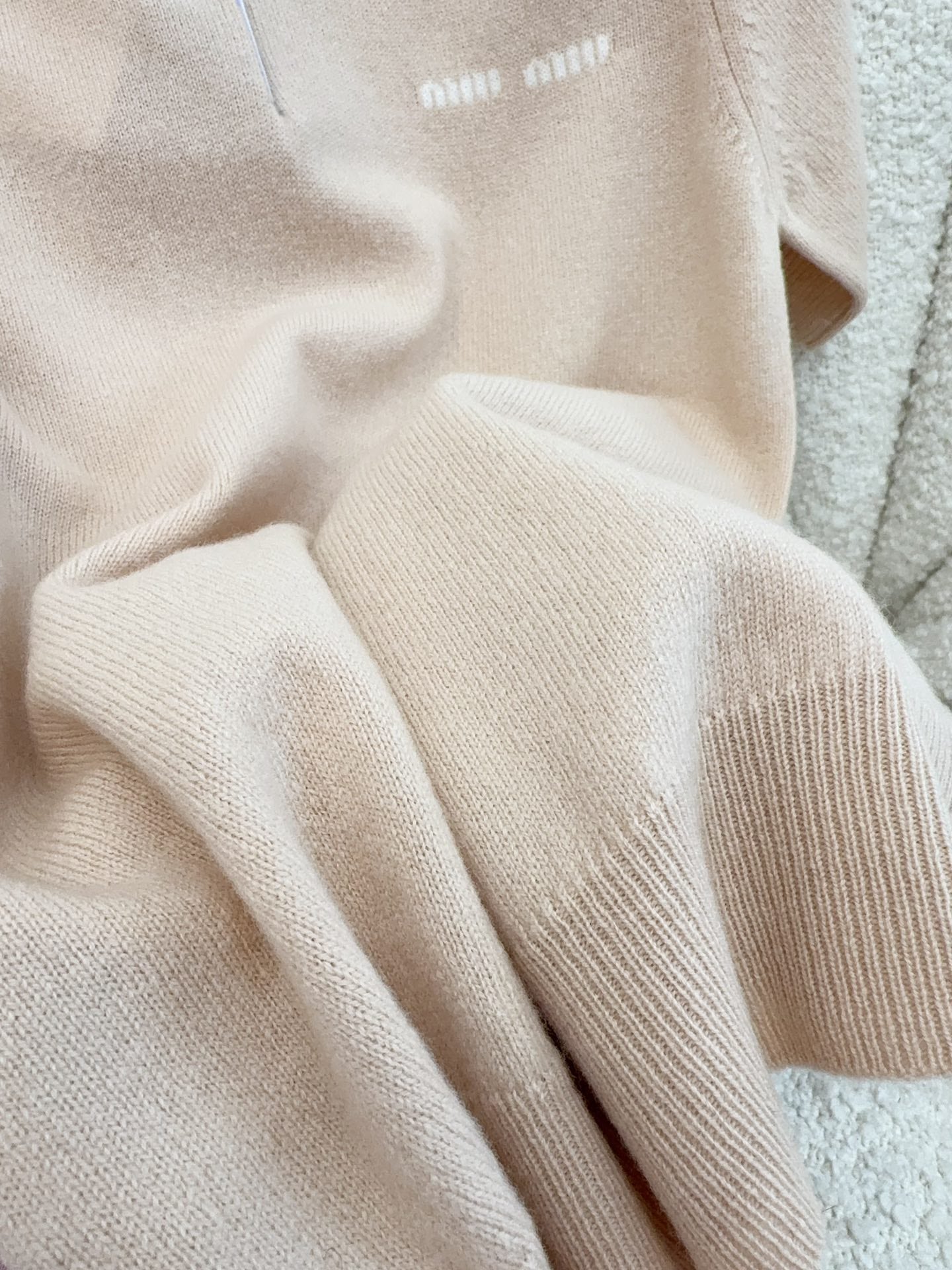Miu Miu 25 Striped Polo Short-sleeved Sweatshirt Beige Cashmere