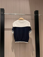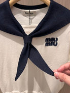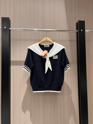 Miu Miu Collar Knotted Short-sleeved Knitted Top Wool tencel