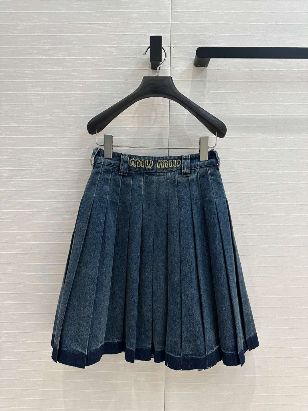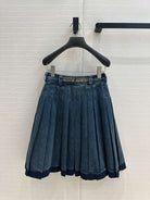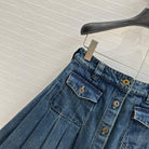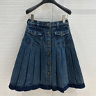 Miu Miu Denim Pleated Long Skirt Blue Cotton