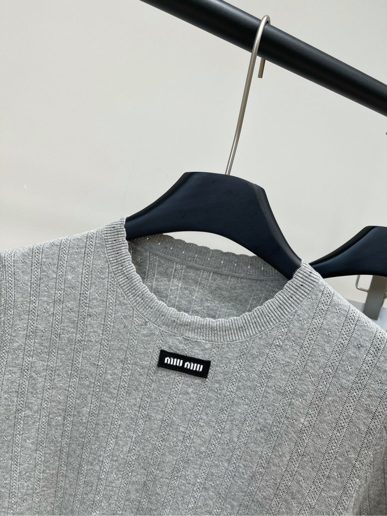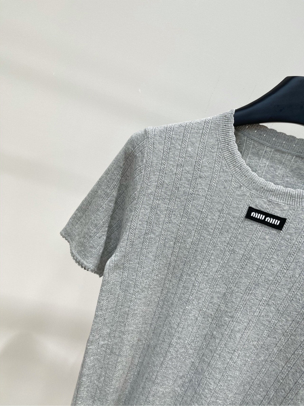 MIUMIU CREW NECK SHORT SLEEVE KNIT TOP 273085