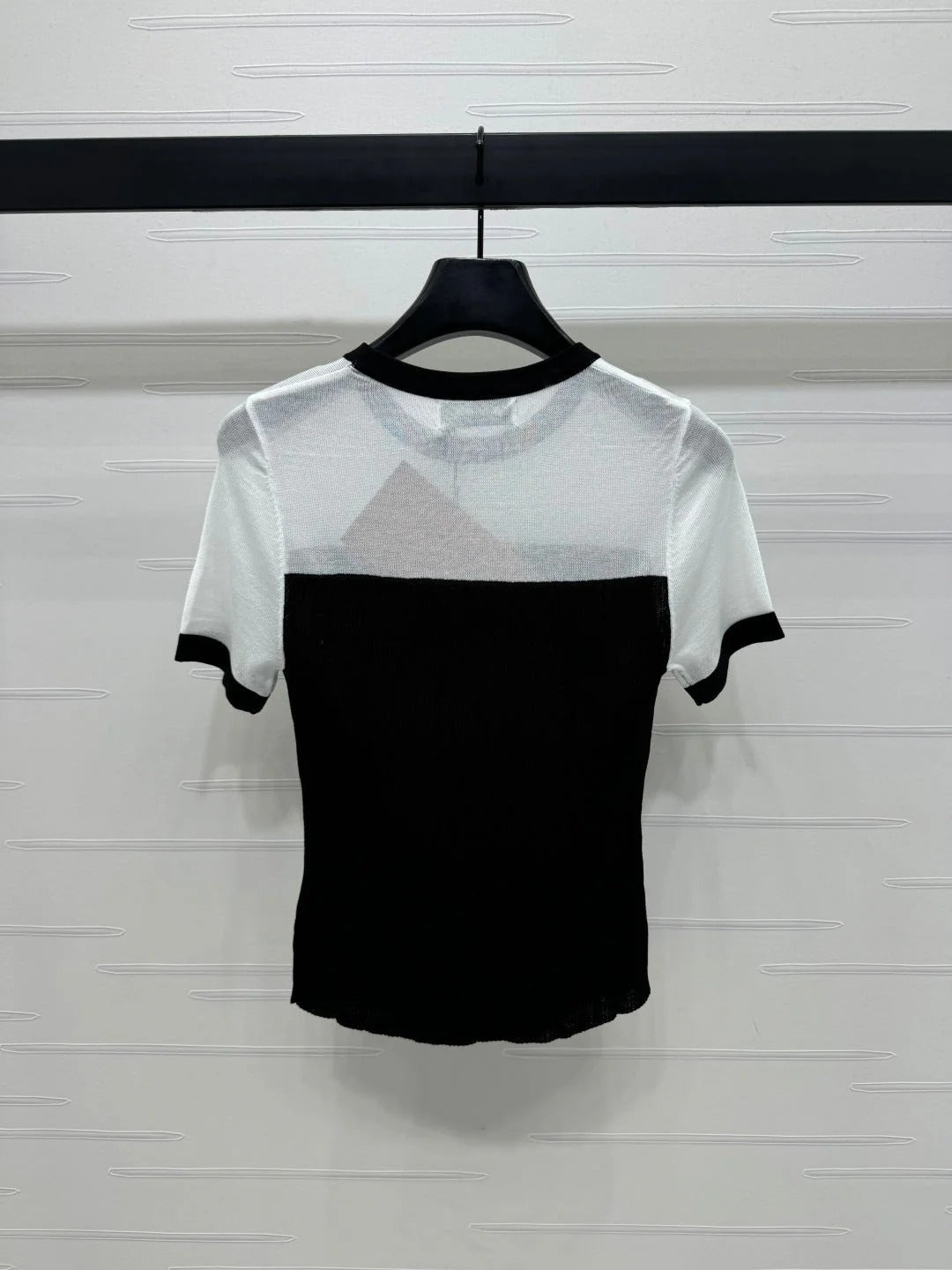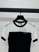 MIUMIU CREW NECK SHORT-SLEEVE SHEER KNIT TOP 274813