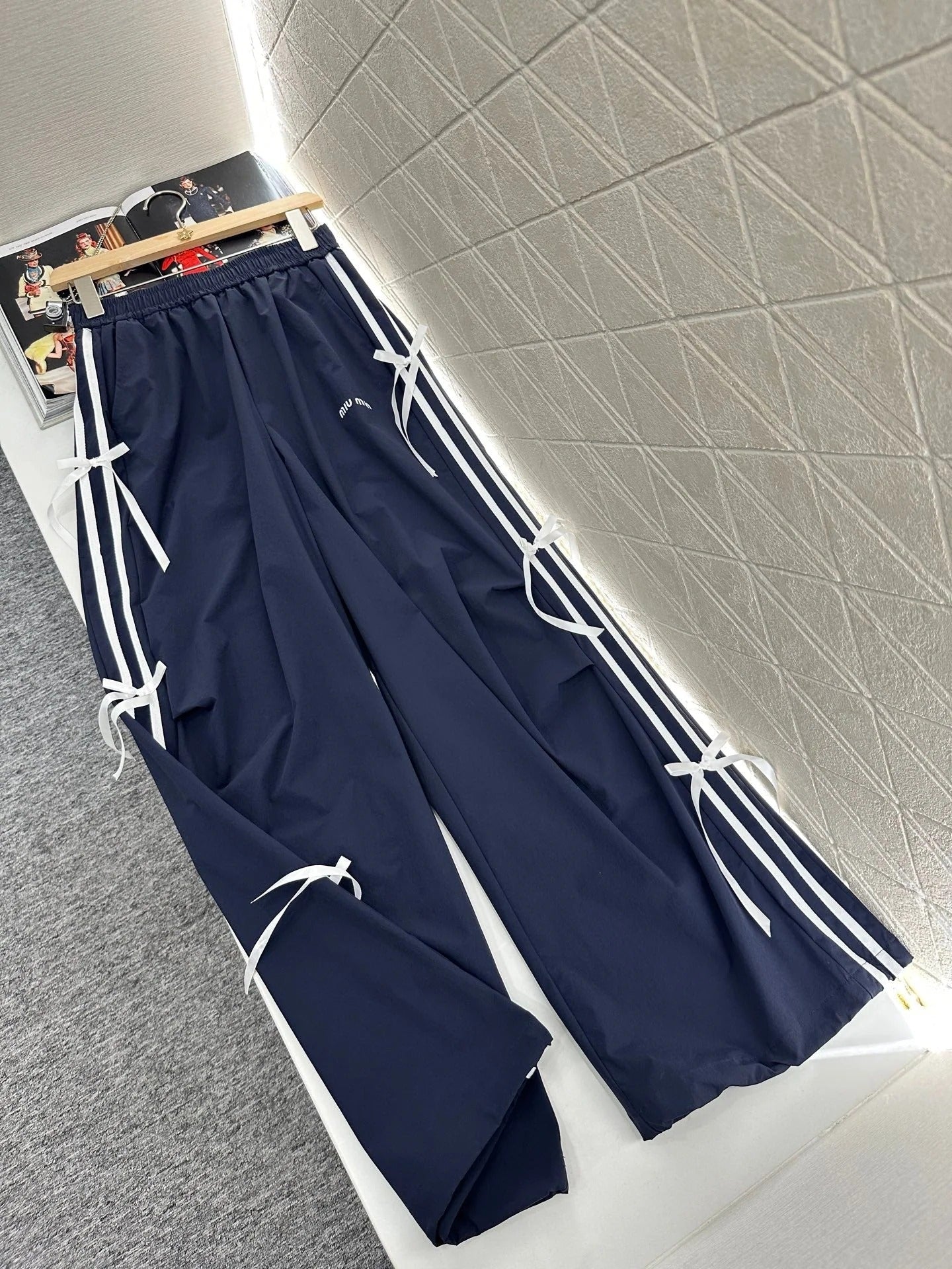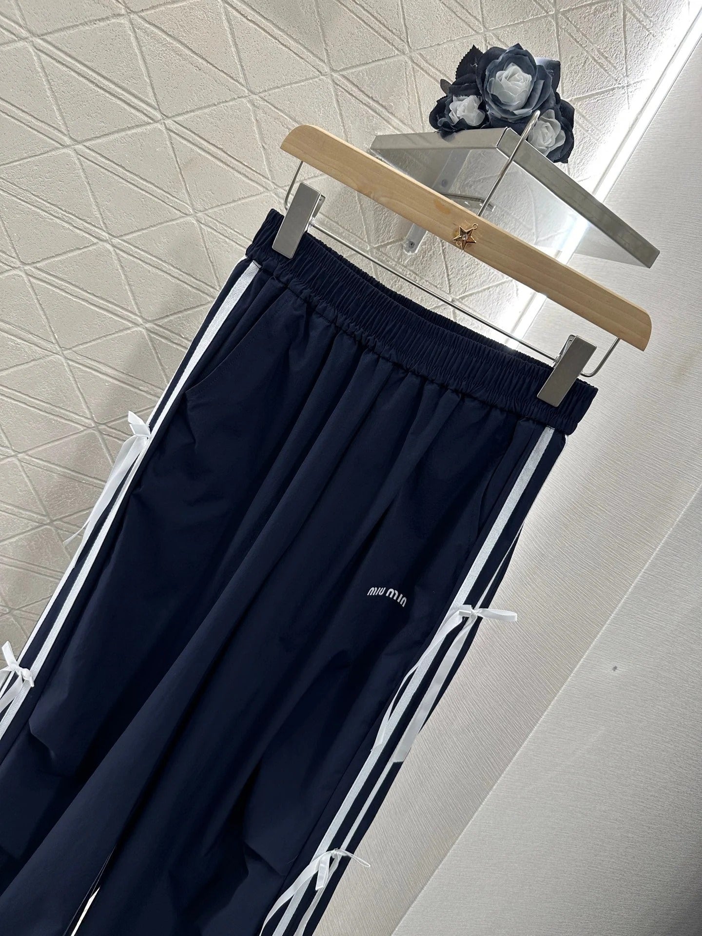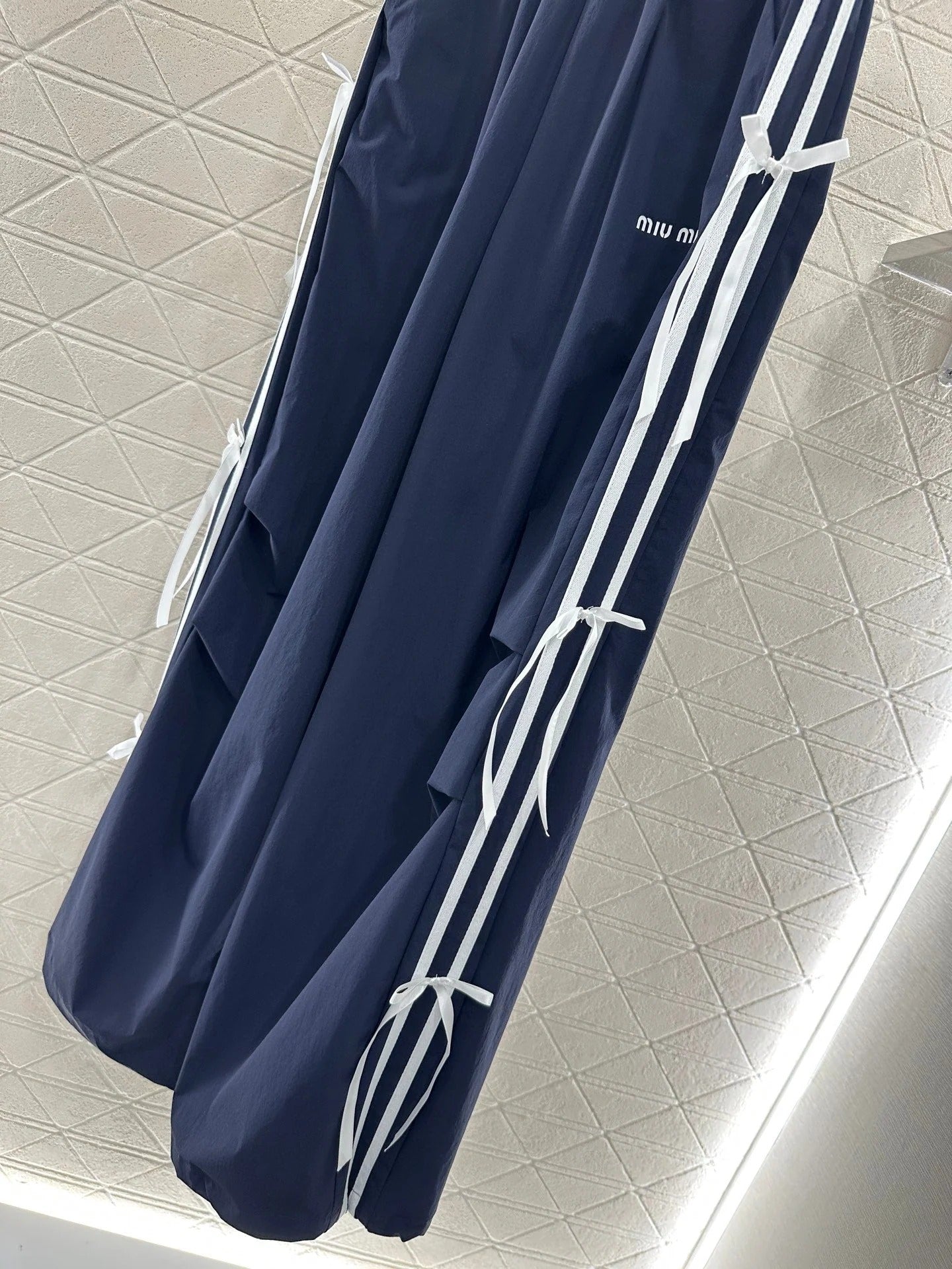 MIUMIU HIGH-WAISTED WIDE-LEG PANTS WITH BOW 276652