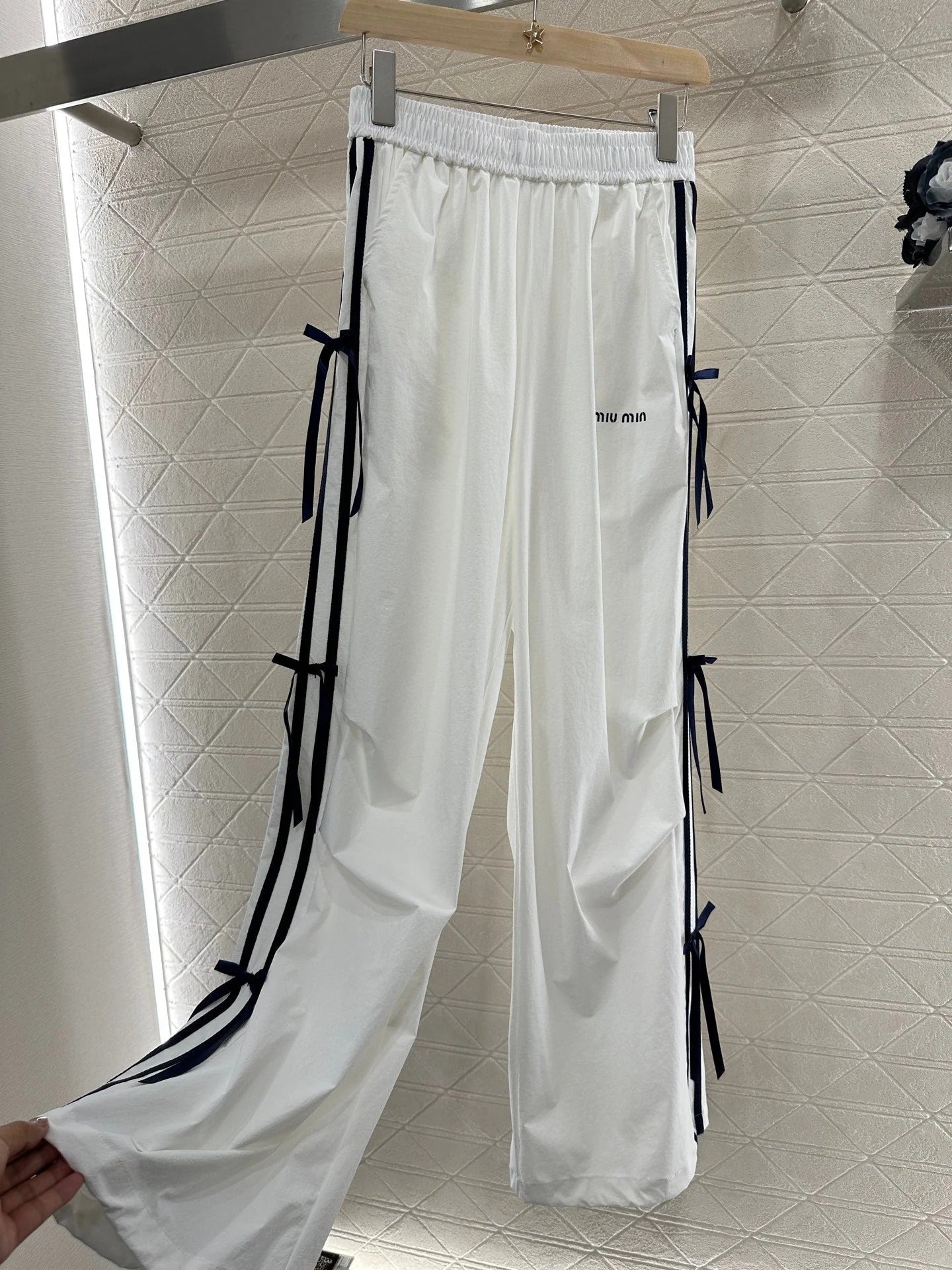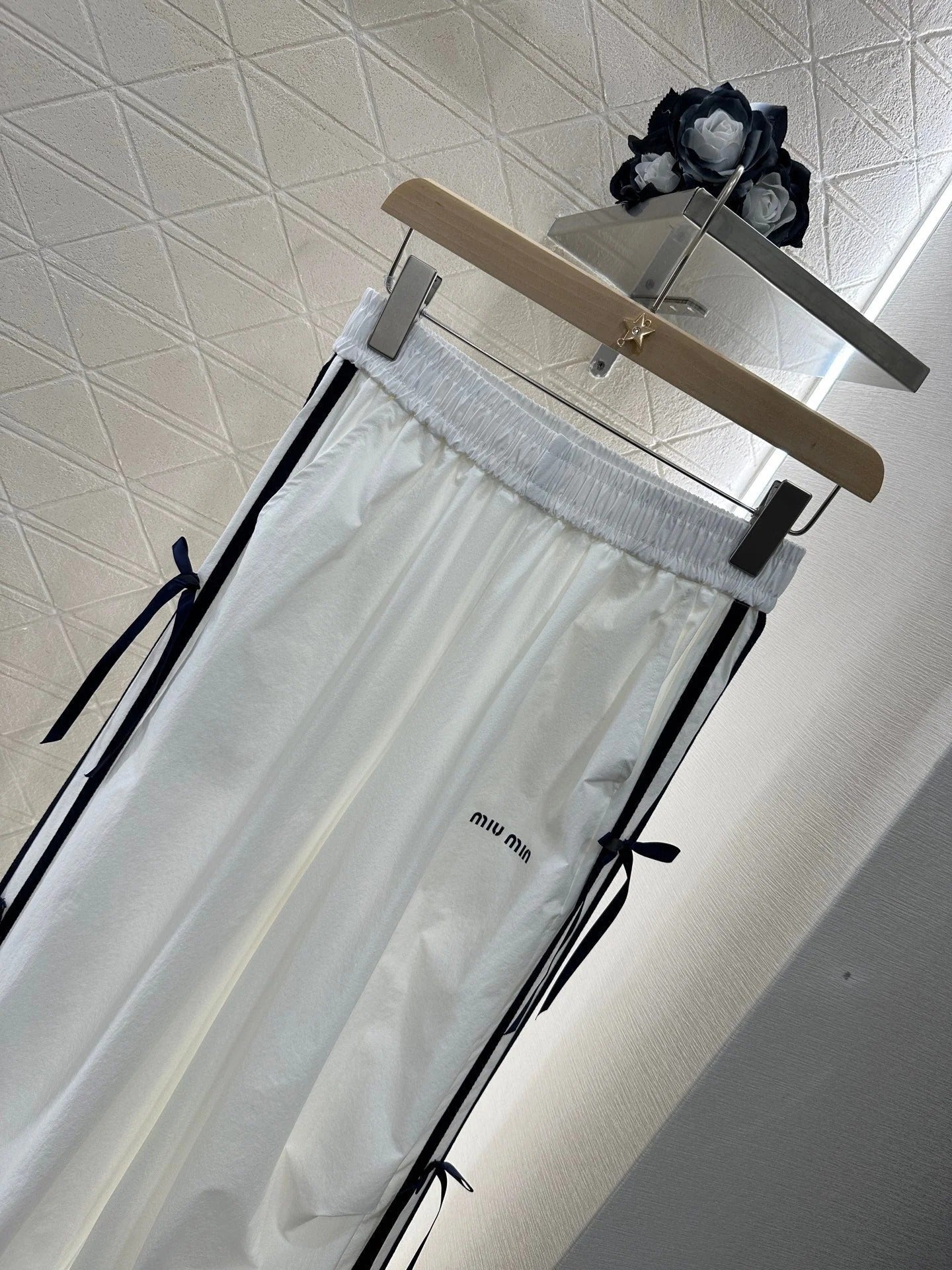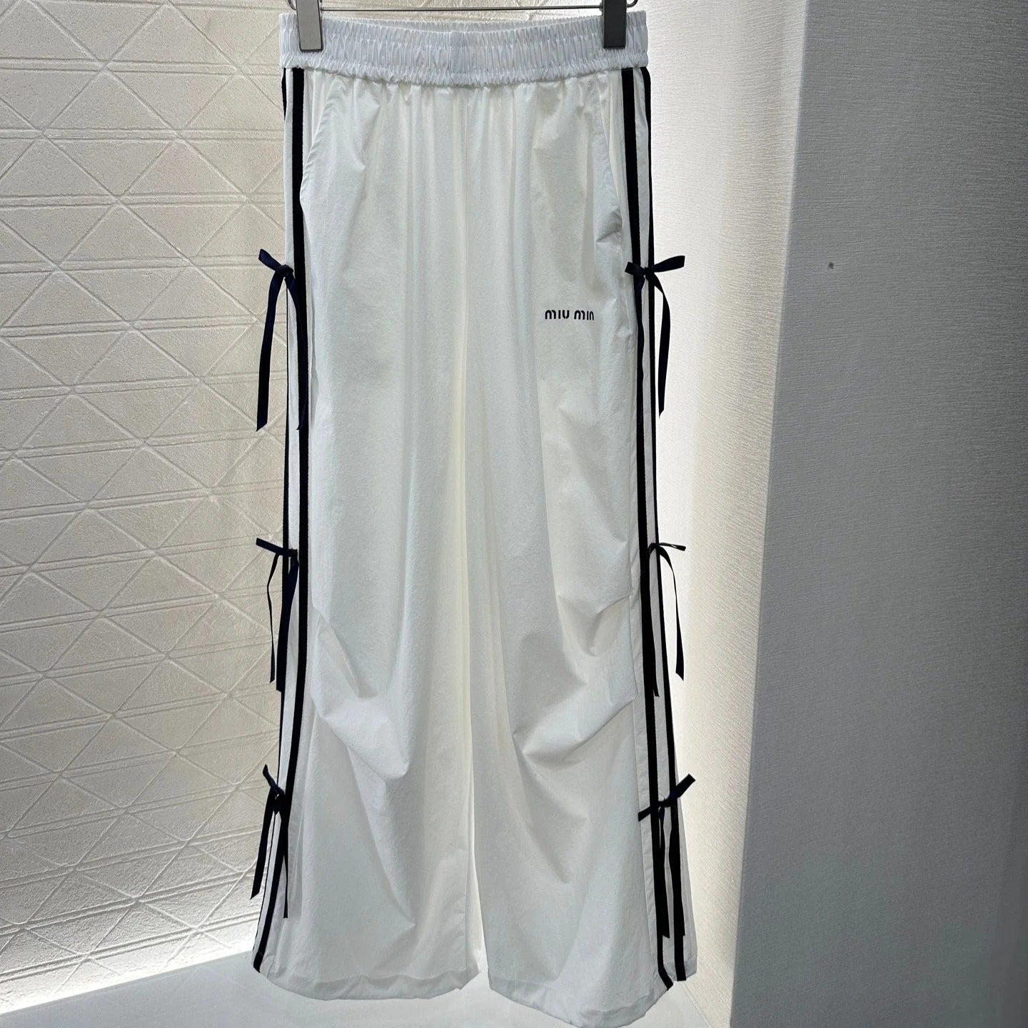 MIUMIU HIGH-WAISTED WIDE-LEG PANTS WITH BOW 276654