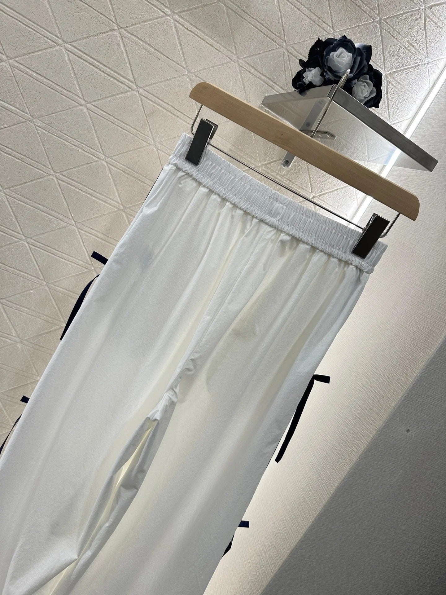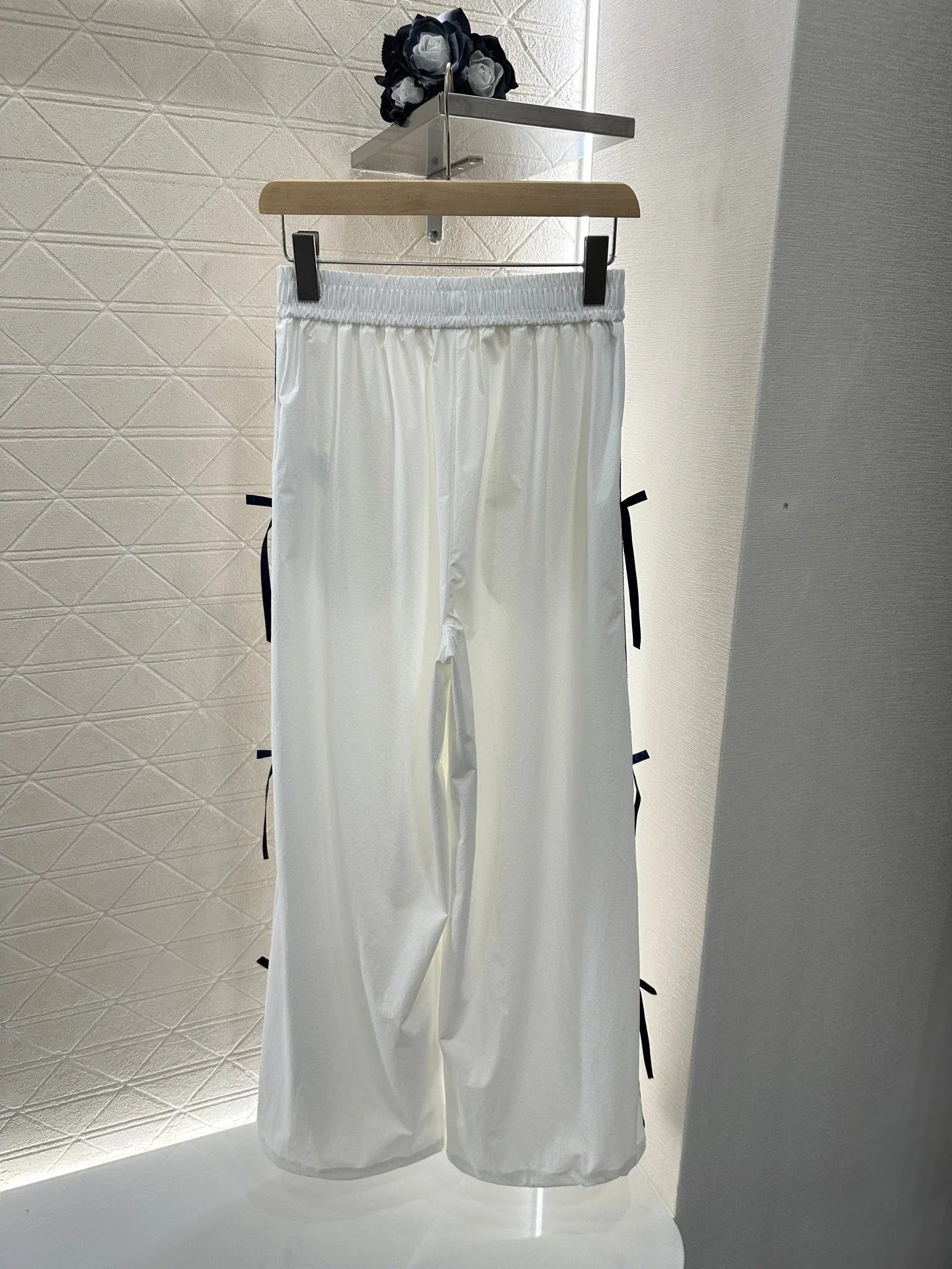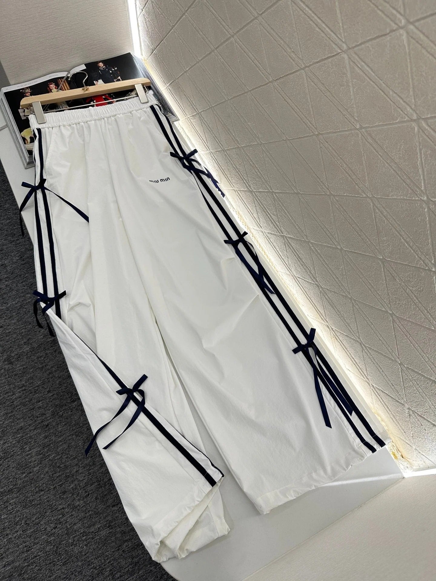 MIUMIU HIGH-WAISTED WIDE-LEG PANTS WITH BOW 276654
