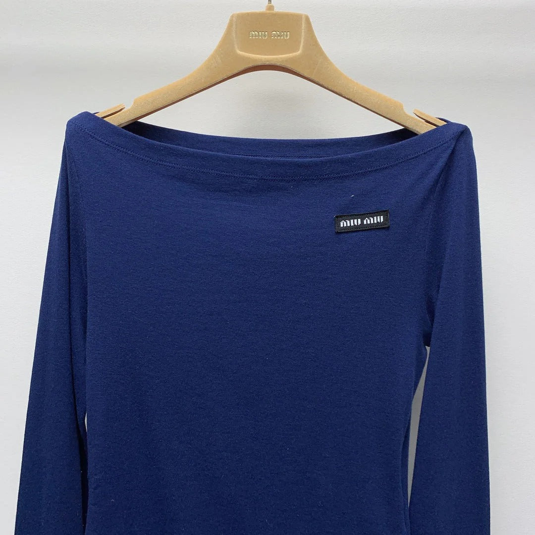 MIUMIU OFF-SHOULDER LOGO T-SHIRT 268133