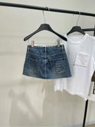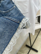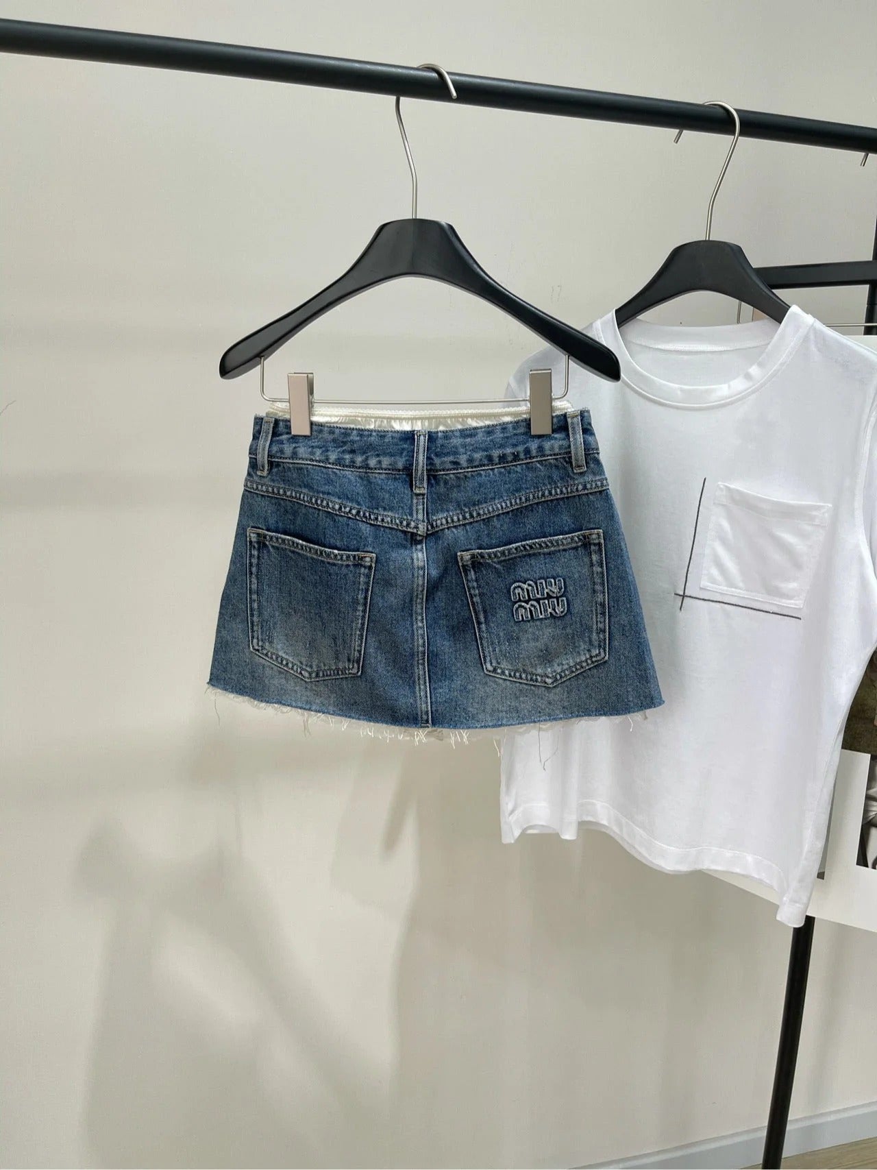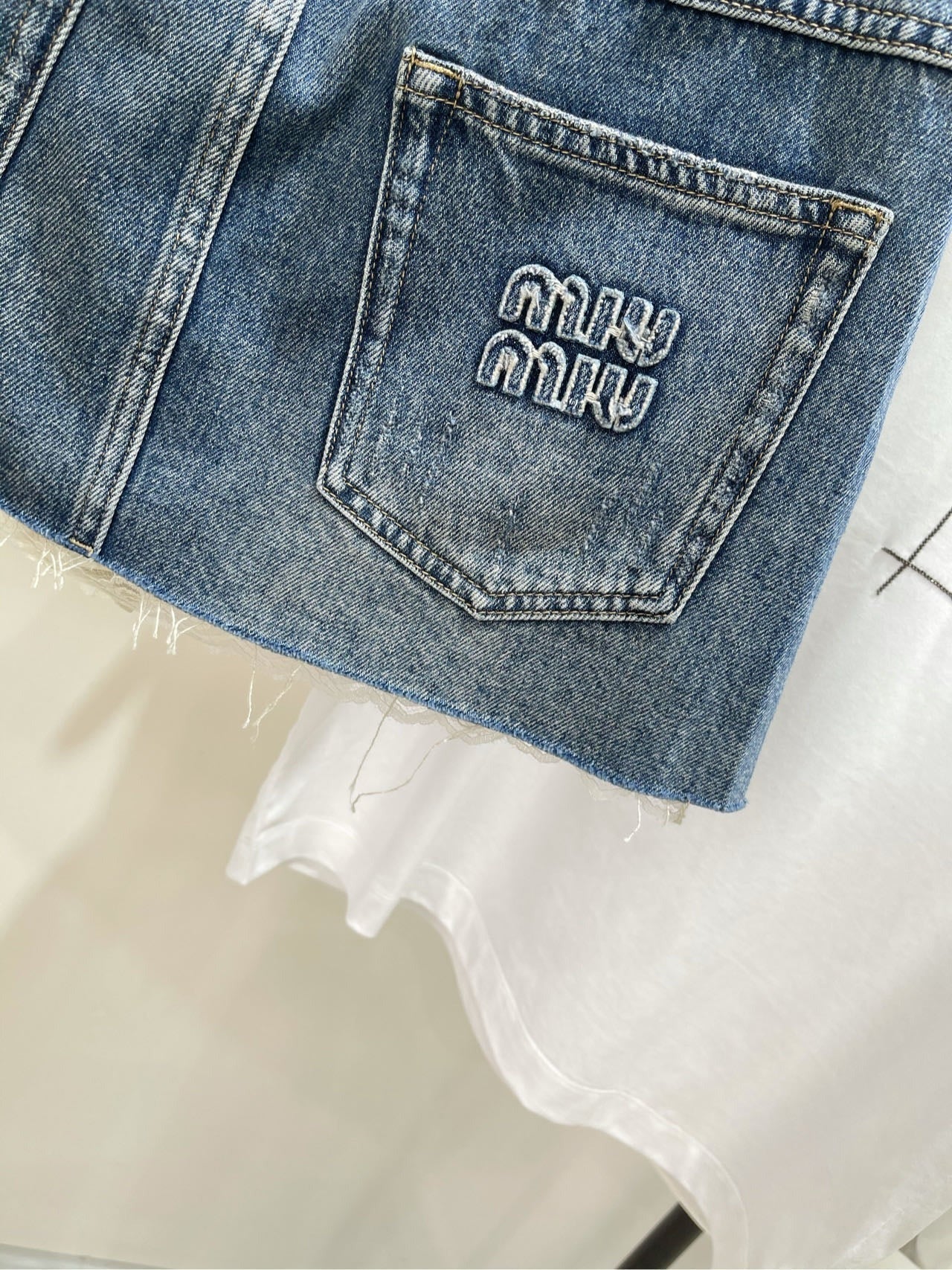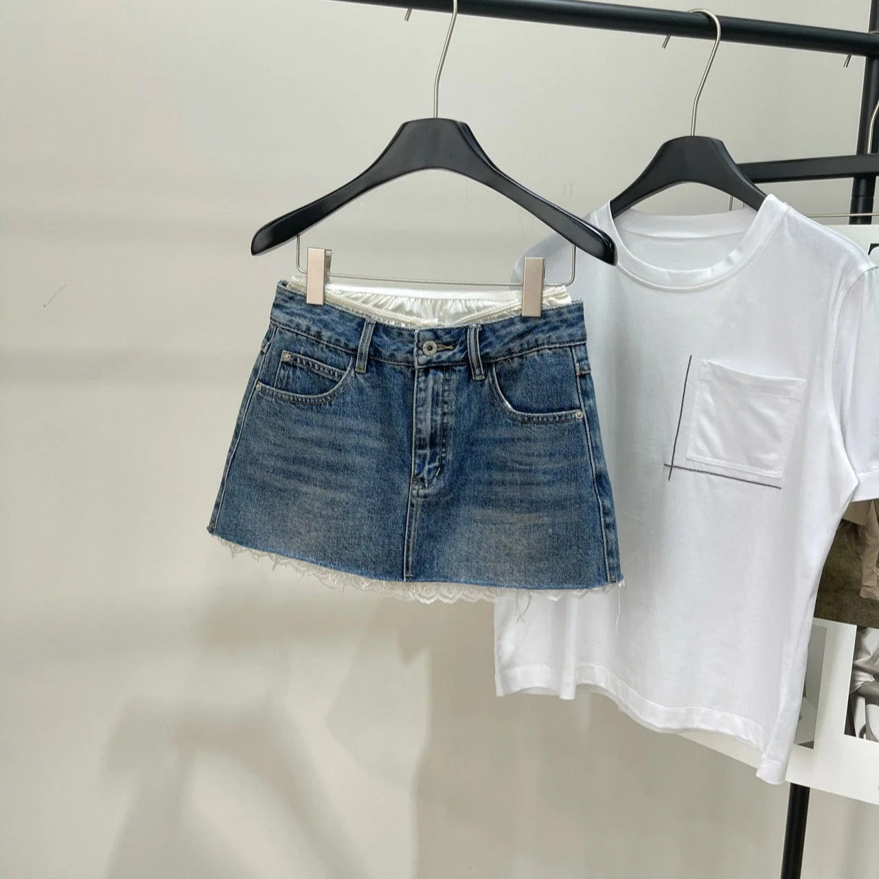 MIUMIU PATCHED DENIM SKIRT WITH LACE 275946
