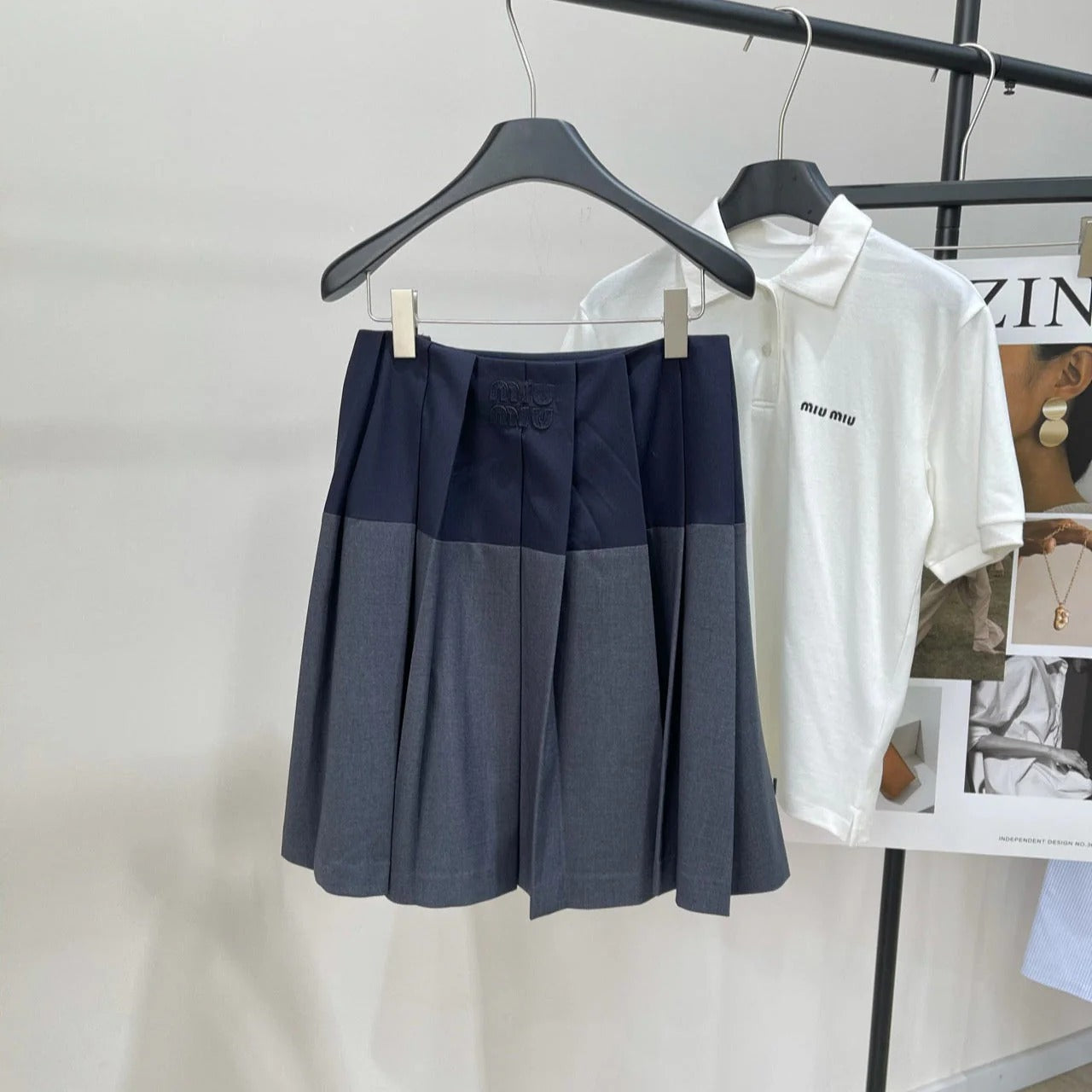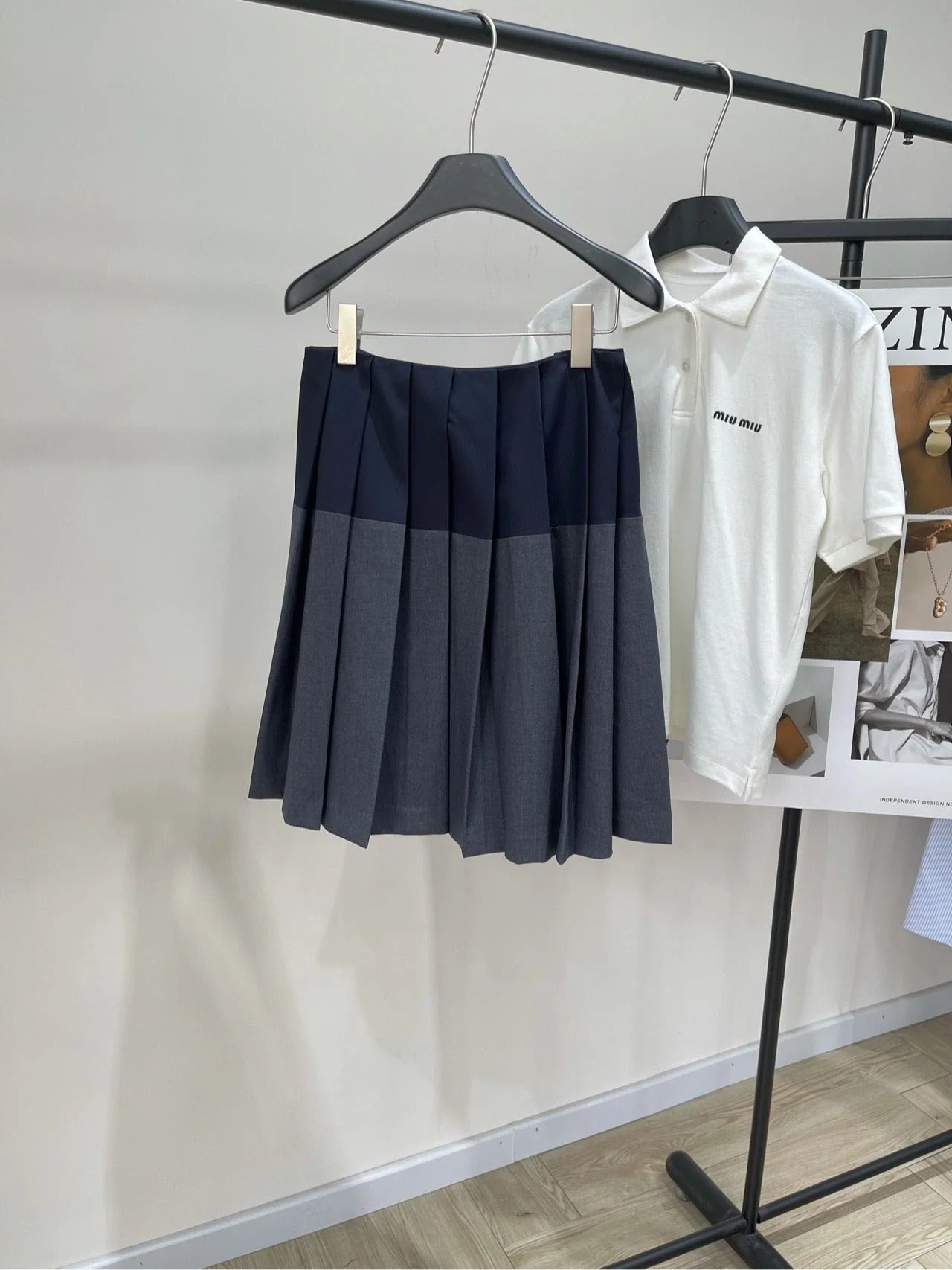 MIUMIU PLEATED LOW-BACK SIDE-SLIT MIDI SKIRT 275985
