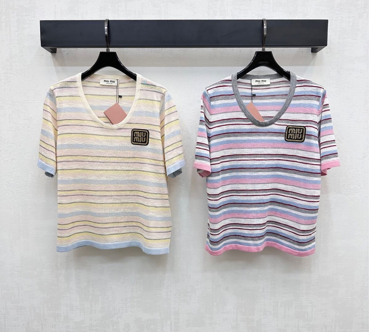 MIUMIU STRIPED KNIT T-SHIRT 273768