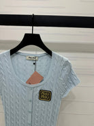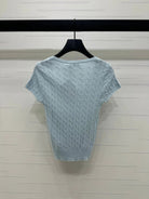 MIUMIU U-NECK KNITTED SHORT-SLEEVE TOP LIGHT BLUE 274948