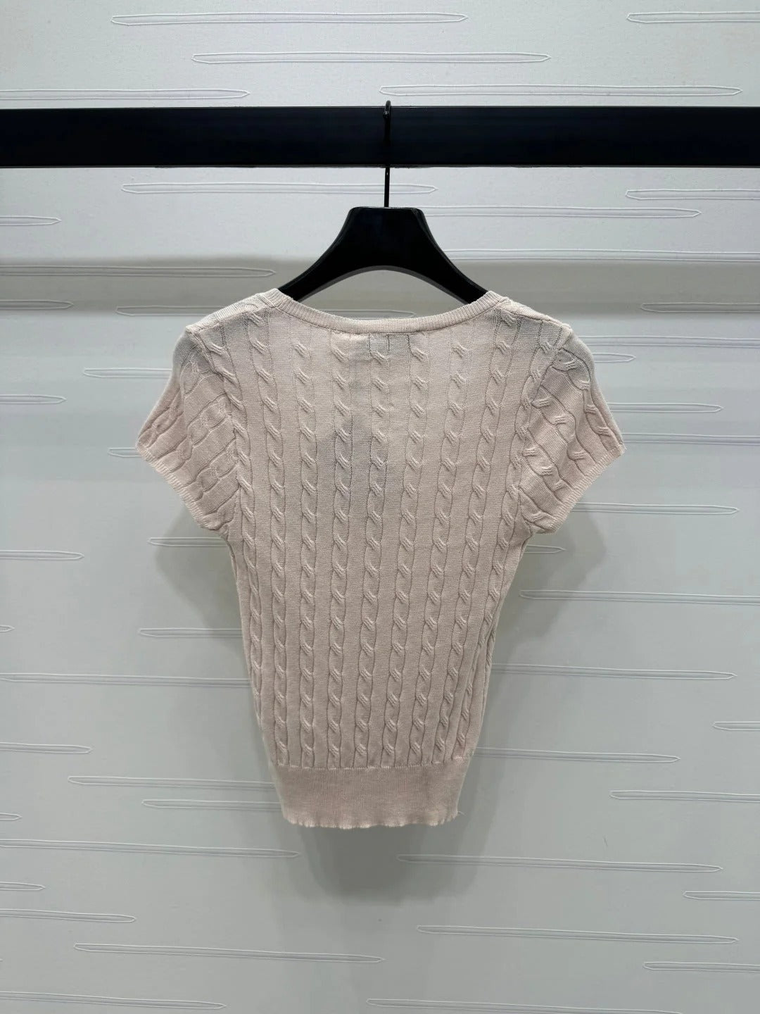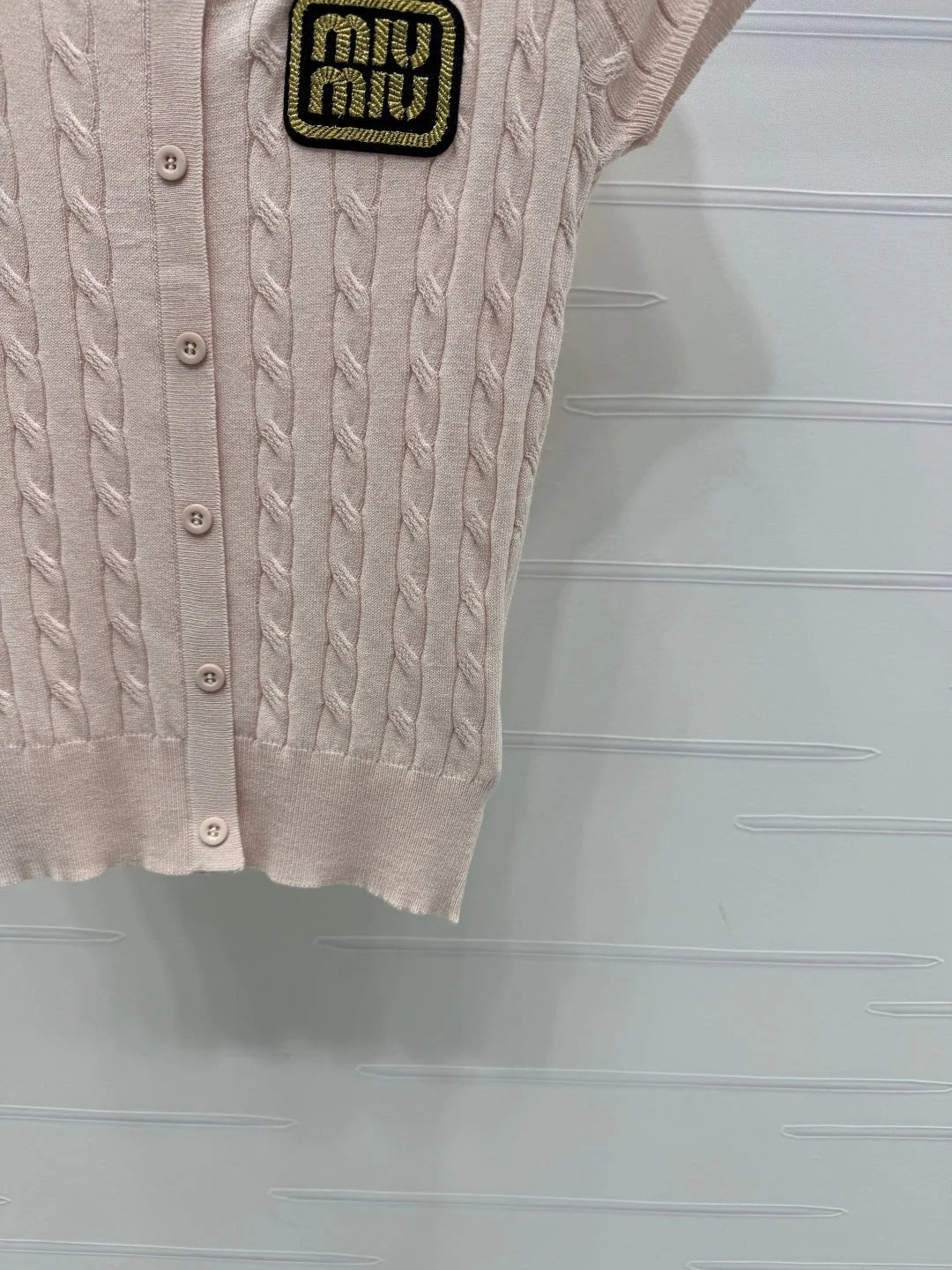 MIUMIU U-NECK KNITTED SHORT-SLEEVE TOP PINK 274947