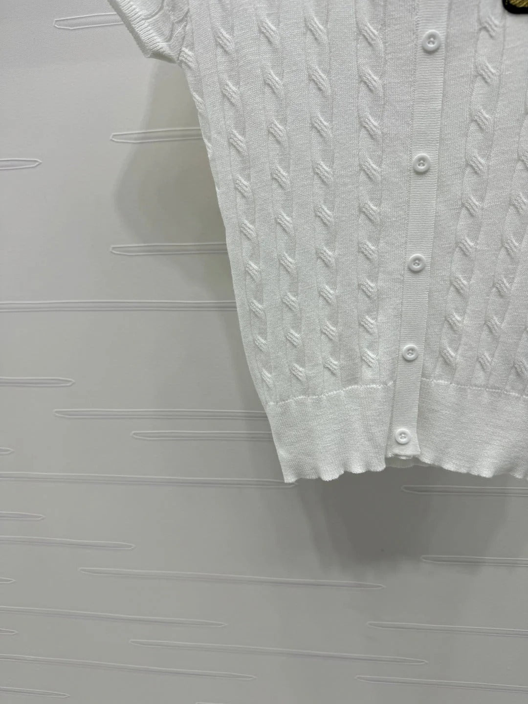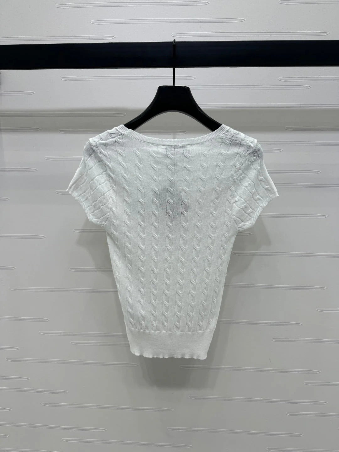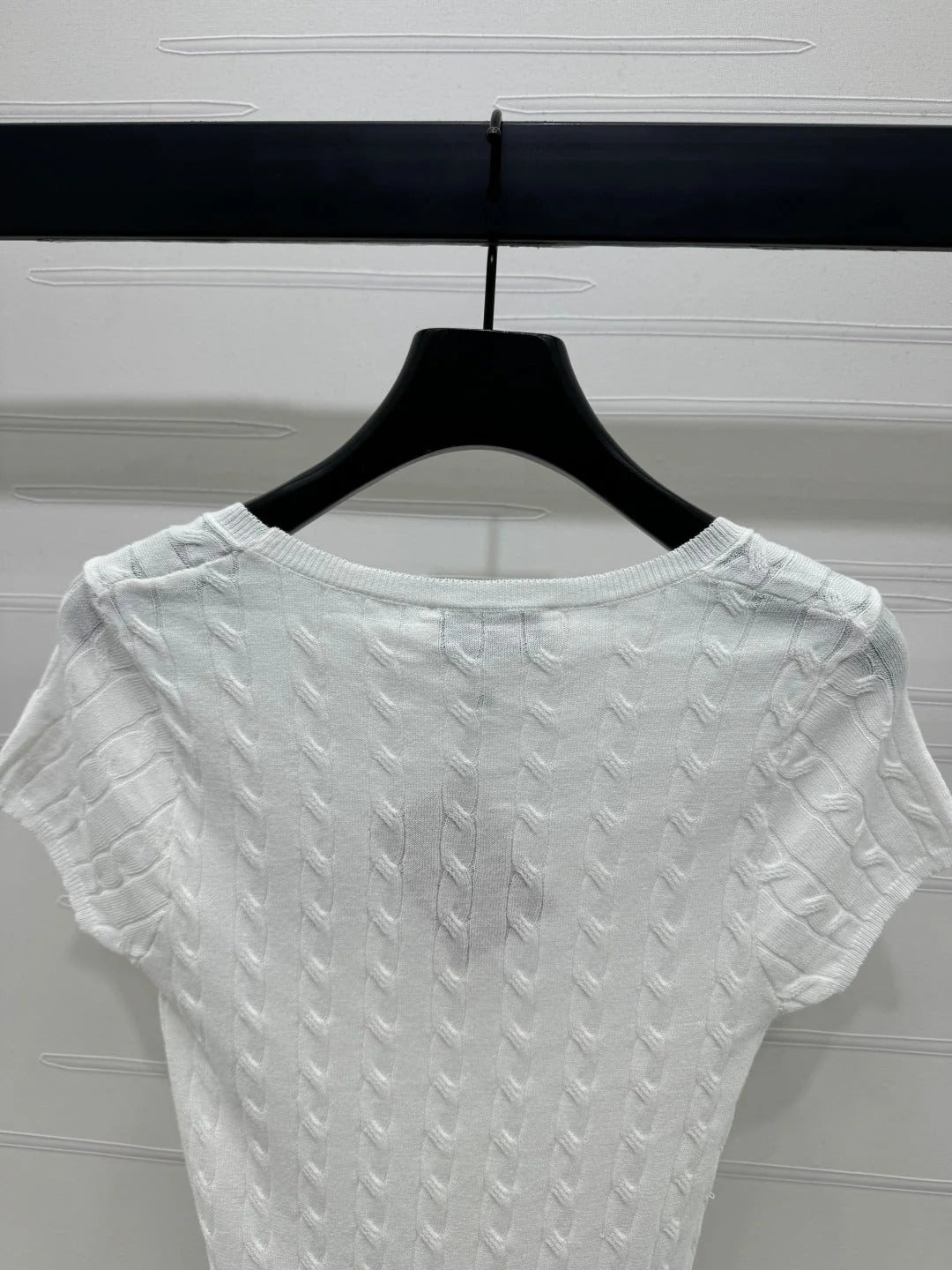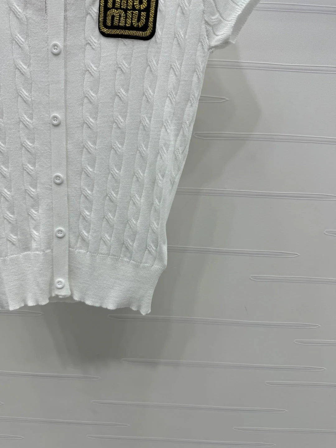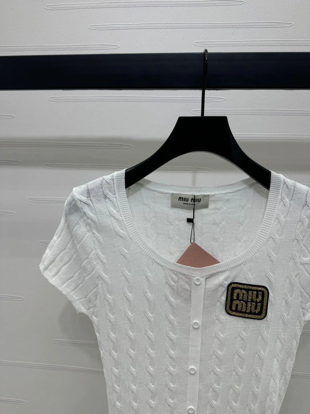 MIUMIU U-NECK KNITTED SHORT-SLEEVE TOP WHITE 274946